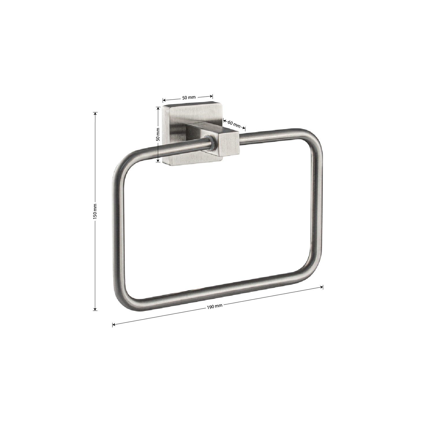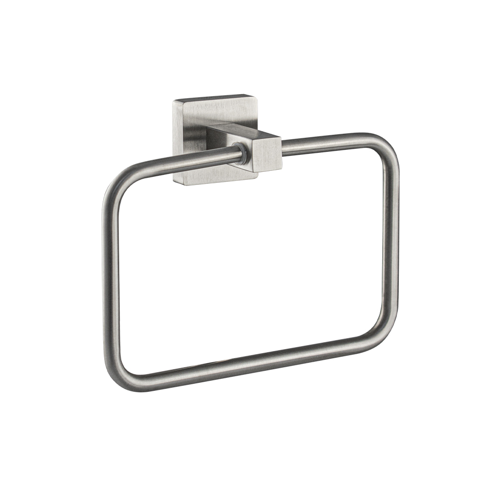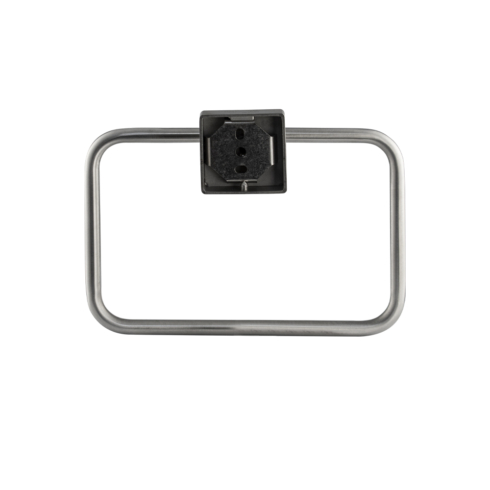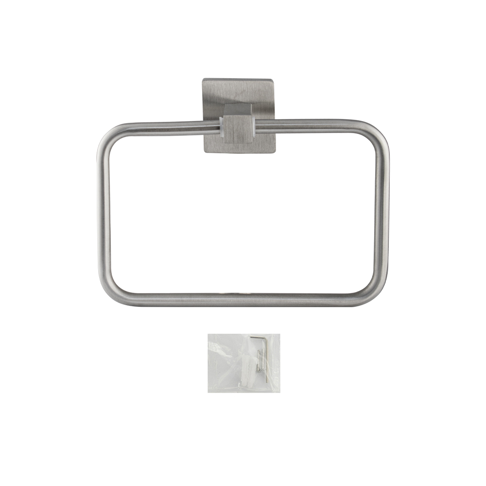 Держатель для полотенец металлический, в виде кольца. Изготовлен из прочной нержавеющей стали марки SUS 304 с матовым покрытием, которое придает безупречный стильный вид и долговечность. На держателе с легкостью можно размещать любые полотенца для сушки. Идеально подойдет не только для ванной, но и для кухни, а также для дачи или гаража – при необходимости на держатель можно вешать любые предметы. Изделие крепится к стене с помощью дюбелей и саморезов (входят в комплект). Габаритные размеры: высота 150 мм, ширина 190 мм, глубина 60 мм, основание 50*50 мм