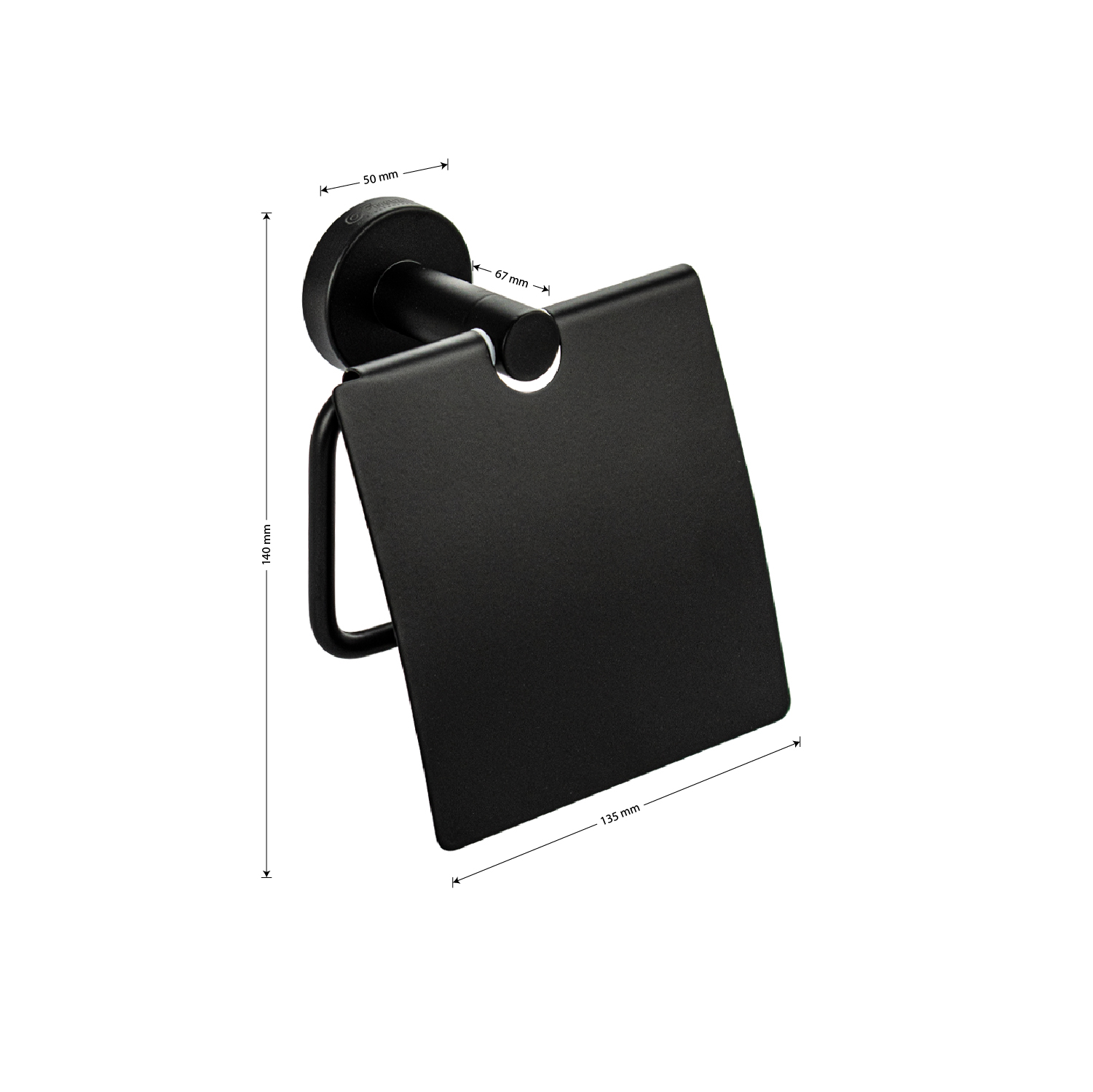 Бумагодержатель с экраном, металлический,на круглом основании, стильный и функциональный элемент санузла. Изготовлен из прочной нержавеющей стали марки SUS 304 с матовым покрытием черного цвета, которое придает безупречный стильный вид и долговечность. Держатель для туалетной бумаги легко и удобно крепится к стене при помощи фурнитуры входящей в комплект поставки. Удобно чистить и легко менять рулоны. Габаритные размеры: ширина 135 мм, высота 140 мм, глубина 67 мм, основание 50 мм.