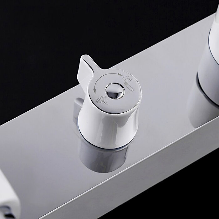 Душевая система для ванны Gappo G2402-8 выполнена из латуни с использованием качественного картриджа. Приятный внешний вид и небольшой размер смесителя понравится многим, а белый цвет с хромом подчеркнет экстерьер большинства ванных комнат. Также имеется поворотный излив, который более рационален в использовании чем стационарный. Верхний душ, как положено, крепится на поворотном шарнире – это позволяет управлять направлением душа, а ручная лейка с тремя режимами имеет функцию гидромассажа. Купить душевую стойку в Минске можно по телефону, также доставим товар по всей Беларуси.