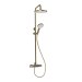 Смеситель термостатический с дисплеем + стойка душевая телескопическая “тропический душ” – надежное сантехническое оборудование. Круглый корпус без излива с функцией водопад, цвет матовое золото. Температура и напор воды устанавливаются поворотом двух удобных рукояток. Термостат поддерживает заданную температуру воды и может работать в системах низкого давления с газовыми проточными водонагревателями. Ограничитель температуры до 38 градусов спасает от возможного ожога при случайном повороте рукоятки. Встроенный аэратор формирует комфортный и приятный поток воды. Сеточка легко снимается для удаления налета. Аксессуар оснащен термостатическим картриджем с шумоподавлением и керамической кран-буксой, стойка с двумя лейками и шлангом. Габаритные размеры: высота стойки 800-1200 мм, длина излива стойки 360 мм, лейка для душа 130 мм двухрежимная, лейка тропического душа 255 мм, глубина смесителя 100 мм, ширина смесителя 150 мм, высота смесителя 95 мм, шланг 150 см. Вес – 4.11 кг