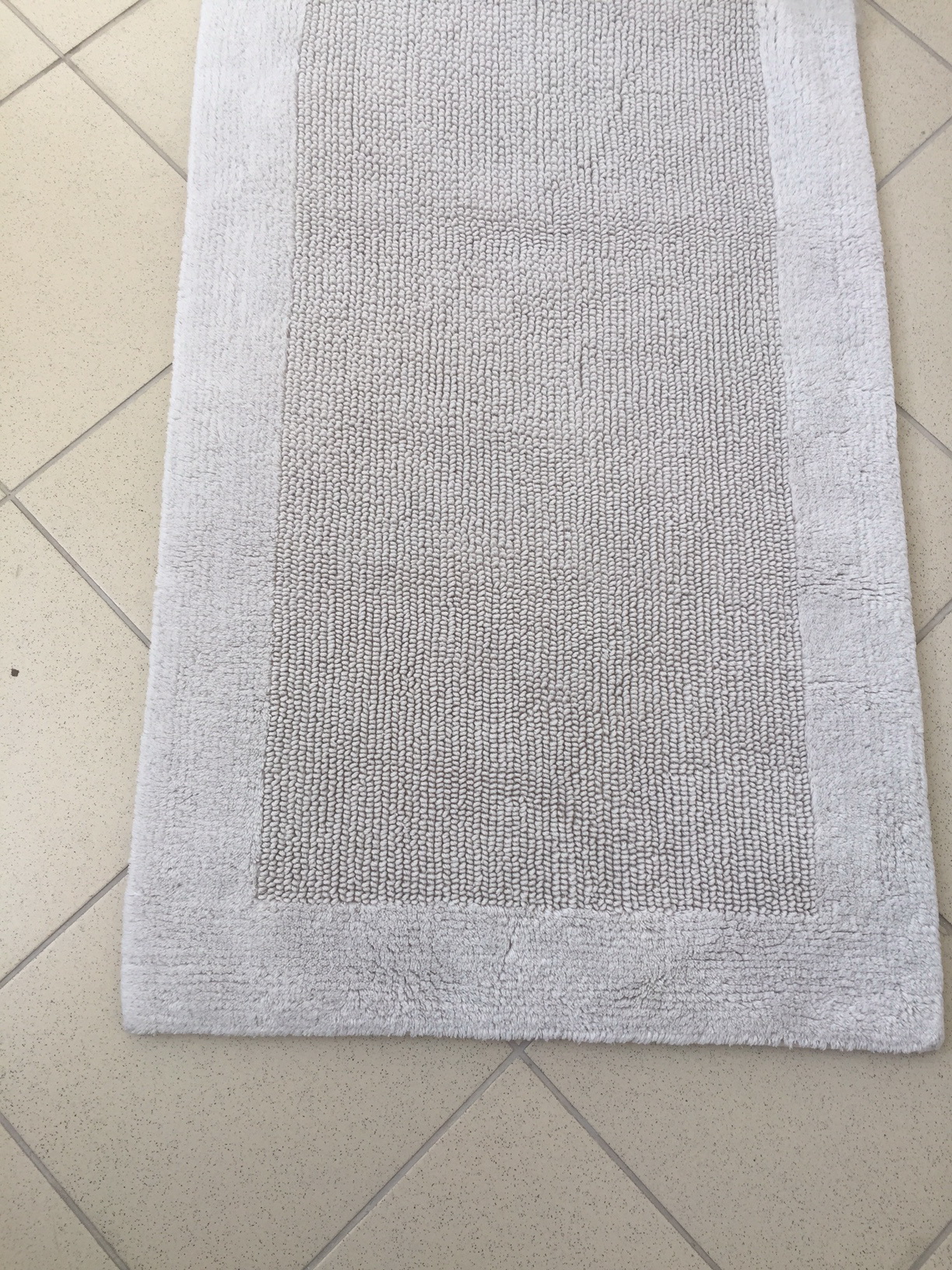 Коврик для ванной комнаты. Материал – 100% хлопок. Цвет серый. Двухсторонний рисунок. Основные преимущества – практичность, долговечность, простота ухода, экологичность. Качество материала позволяет на протяжении длительного времени сохранять первоначальную форму, цвет и высоту ворса коврика. Для сохранения мягкости нитей ткани рекомендуется ручная или машинная стирка с добавлением смягчающих средств. С целью избежания деформации коврик следует сушить на плоской поверхности. Может использоваться не только в ванной комнате, но и в других помещениях. Допустимо размещение на подогреваемых полах.