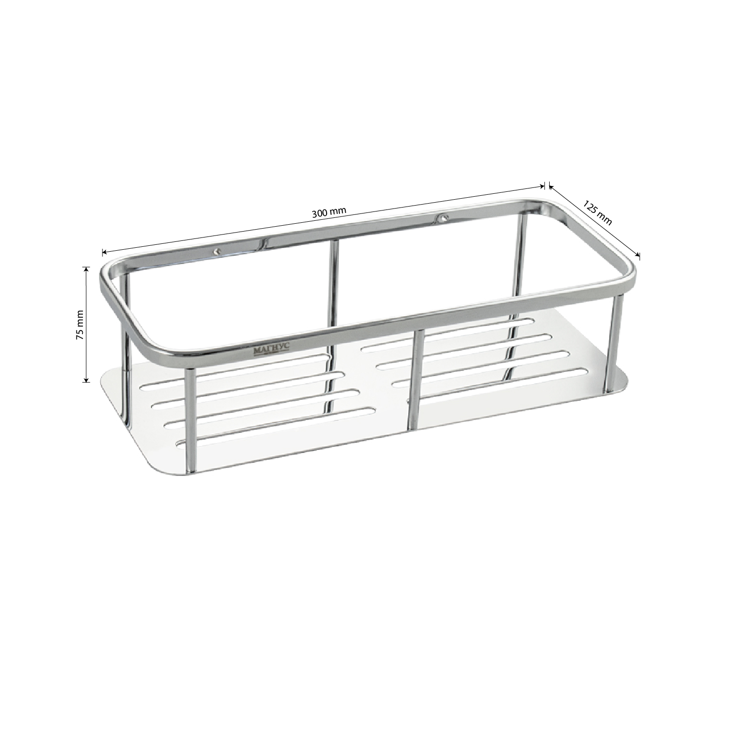 Полочка для принадлежностей прямоугольная с литым дном однаэтажная, обладает высокими эксплуатационными характеристиками и подходит для использования дома, в общественных местах: отелях, ресторанах и пр. Изготовлена из прочной нержавеющей стали с хромоникелевым покрытием, которое придает безупречный глянцевый блеск и долговечность. Аксессуар не занимает много места, надежно фиксируется к стене при помощи набора креплений (входят в комплект) и служит удобным местом для хранения бытовых и косметических средств. Габаритные размеры: длина 300 мм, высота 75 мм, глубина 125 мм