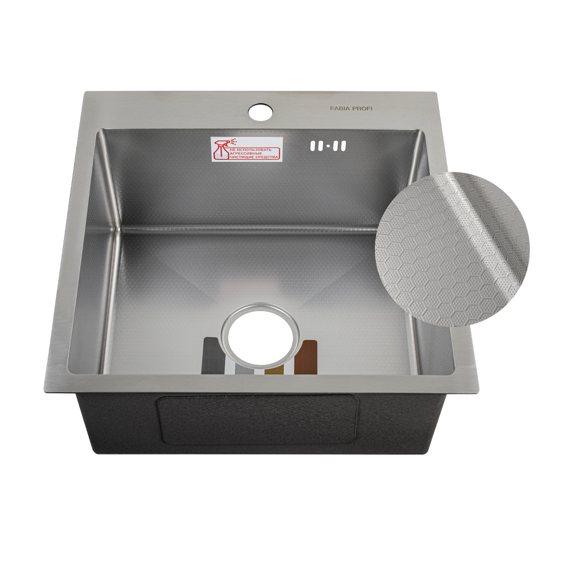 Мойка врезная, матовая, большой сифон с переливом. Сифон с углубленной горловиной, мусоросборником и крышкой. Врезная кухонная мойка произведена из премиальной нержавеющей стали AISI 304, обладает повышенной прочностью. Особенность мойки заключается в конструкции ее дна, имеющего небольшой уклон. Благодаря такой особенности, вода быстрее уходит в слив, не застаивается, что способствует поддержанию гигиеничности в чаше. Скругленные внутренние углы облегчают уход за мойкой, препятствуют скоплению частичек грязи.Тихой в использовании мойку делает шумоизолирующее покрытие и накладки с обратной стороны мойки. В комплект входит универсальная раздвижная корзина, коврик, сифон, мойка, крепёж. Габаритные размеры: ширина 500 мм, длина 500 мм, глубина 220 мм, толщина основания 3,0 мм, чаша 0,8 мм. Вес – 8,0 кг, объём – 0,07000 м3.
