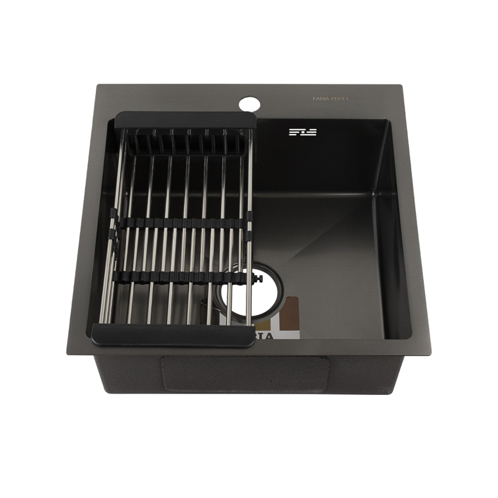Мойка врезная, декорированная, графит, большой сифон с переливом. Сифон с углубленной горловиной, мусоросборником и крышкой. Врезная кухонная мойка произведена из премиальной нержавеющей стали AISI 304, обладает повышенной прочностью. Особенность мойки заключается в конструкции ее дна, имеющего небольшой уклон. Благодаря такой особенности, вода быстрее уходит в слив, не застаивается, что способствует поддержанию гигиеничности в чаше. Скругленные внутренние углы облегчают уход за мойкой, препятствуют скоплению частичек грязи. Тихой в использовании мойку делает шумоизолирующее покрытие и накладки с обратной стороны мойки. В комплект входит универсальная раздвижная корзина, коврик, сифон, мойка, крепёж. Габаритные размеры: ширина 500 мм, длина 500 мм, глубина 200 мм, толщина основания 3,0 мм, чаша 0,8 мм. Вес – 7,500 кг, объём – 0,07000 м3.