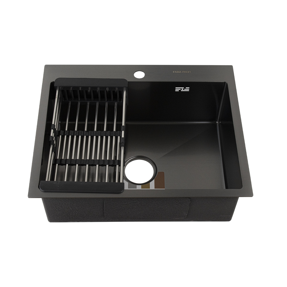 Мойка врезная, графит, большой сифон с переливом. Сифон с углубленной горловиной, мусоросборником и крышкой. Врезная кухонная мойка произведена из премиальной нержавеющей стали AISI 201, обладает повышенной прочностью. Особенность мойки заключается в конструкции ее дна, имеющего небольшой уклон. Благодаря такой особенности, вода быстрее уходит в слив, не застаивается, что способствует поддержанию гигиеничности в чаше. Скругленные внутренние углы облегчают уход за мойкой, препятствуют скоплению частичек грязи. Тихой в использовании мойку делает шумоизолирующее покрытие и накладки с обратной стороны мойки. В комплект входит универсальная раздвижная корзина, коврик, сифон, мойка, крепёж. Габаритные размеры: ширина 600 мм, длина 500 мм, глубина 200 мм, толщина основания 3,0 мм, чаша 0,8 мм. Вес – 8,500 кг, объём – 0,08845 м3.