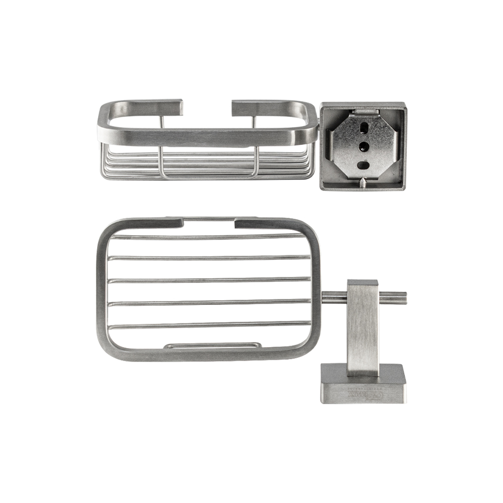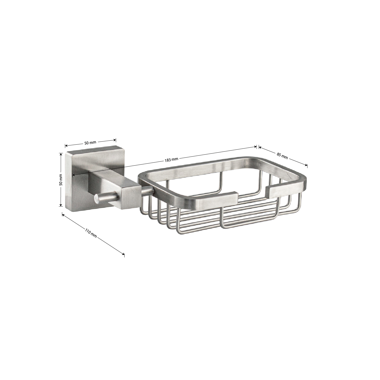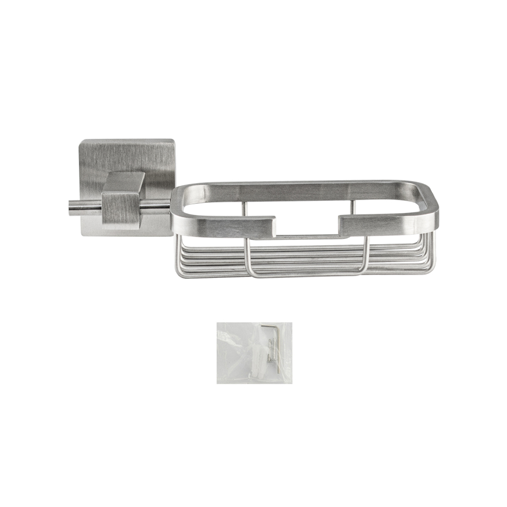Мыльница подвесная, настенная, прямоугольной формы, на основании, решетка. Изготовлен из прочной нержавеющей стали марки SUS 304 с матовым покрытием, которое придает безупречный стильный вид и долговечность. Сетчатый каркас не позволяет влаге скапливаться, поэтому мыло долгое время сохраняет свою форму. Идеально подойдет не только для ванной, но и для кухни. Изделие крепится к стене с помощью дюбелей и саморезов (входят в комплект). Габаритные размеры: высота 50 мм, длина 183 мм, глубина 110 мм, посадочное седло 50*50 мм.