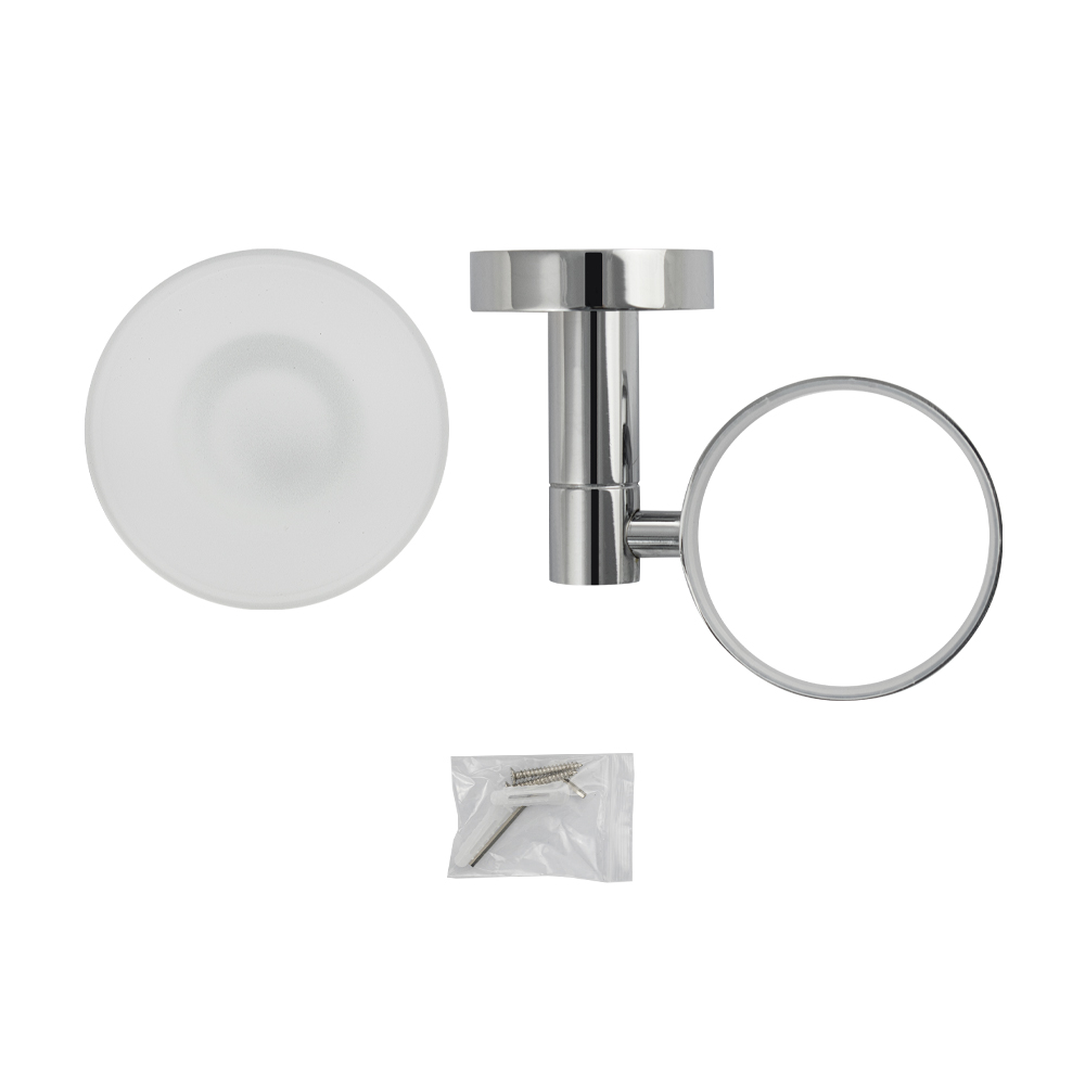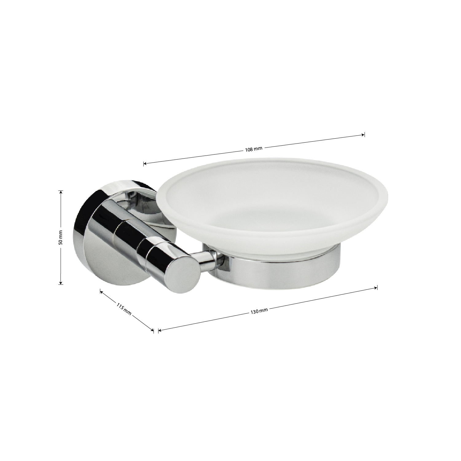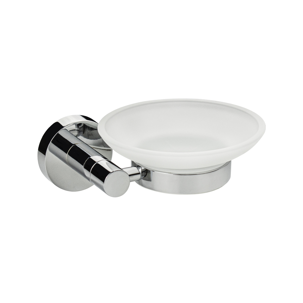 Мыльница подвесная, стеклянная с креплением к стене, круглой формы на основании, хромированная. Изделие выполнено из матового стекла и металла с хромированным покрытием. Материал изготовления — нержавеющая сталь. Хромированное покрытие очень стойко переносит истирания и обеспечивает зеркальный блеск изделия. Идеально подойдет не только для ванной, но и для кухни. Изделие крепится к стене с помощью дюбелей и саморезов (входят в комплект). Габаритные размеры: ширина 130 мм, высота 50 мм, диаметр чашки 108 мм, глубина 115 мм. Вес – 0,40 кг, объём – 0,00117 м3.