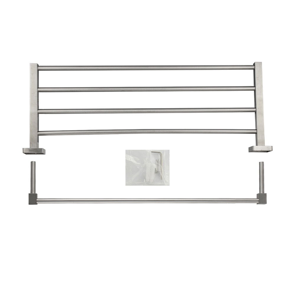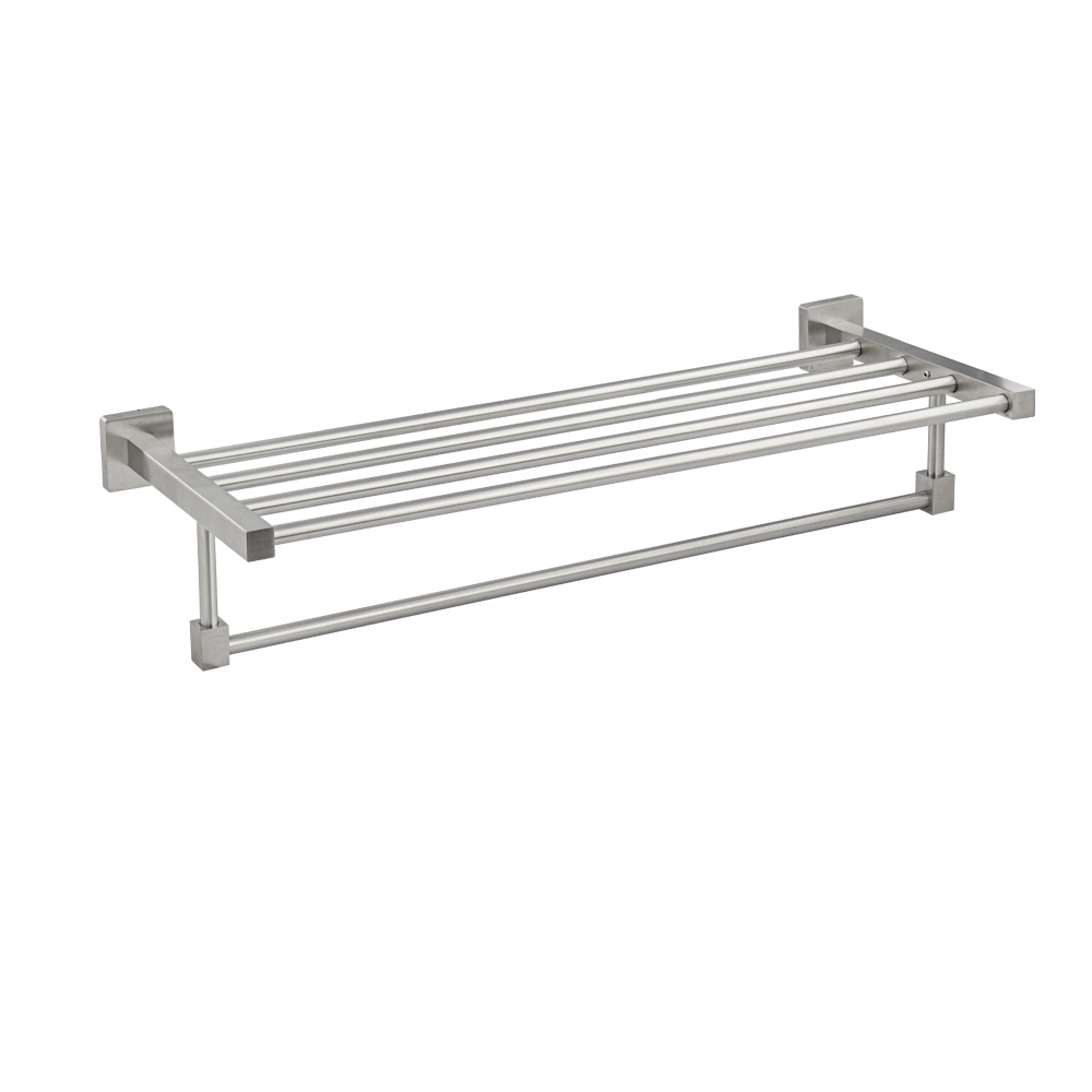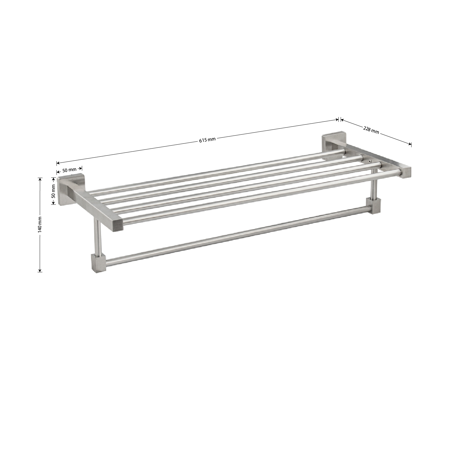 Полка для полотенца с опорой, большая, для ванной, привлекает своим современным дизайном, многофункциональностью и надежностью конструкции. Кухня, ванная, прихожая, кладовая или гардеробная – эта полка идеально подойдет везде. Металлическая полка оснащена дополнительной перекладиной.Матовая нержавеющая сталь делает её устойчивой к влаге и исключает появление ржавчины. Полка для ванной функциональное и практичное решение для любого интерьера. Материал изготовления — нержавеющая сталь марки 304. Матовое покрытие очень стойко переносит истирания и обеспечивает безупречный вид изделия. Идеально подойдет не только для ванной, но и для кухни. Изделие крепится к стене с помощью дюбелей и саморезов (входят в комплект). Габаритные размеры: длина 615 мм, высота 140 мм, глубина 228 мм. основание 50*50 мм.