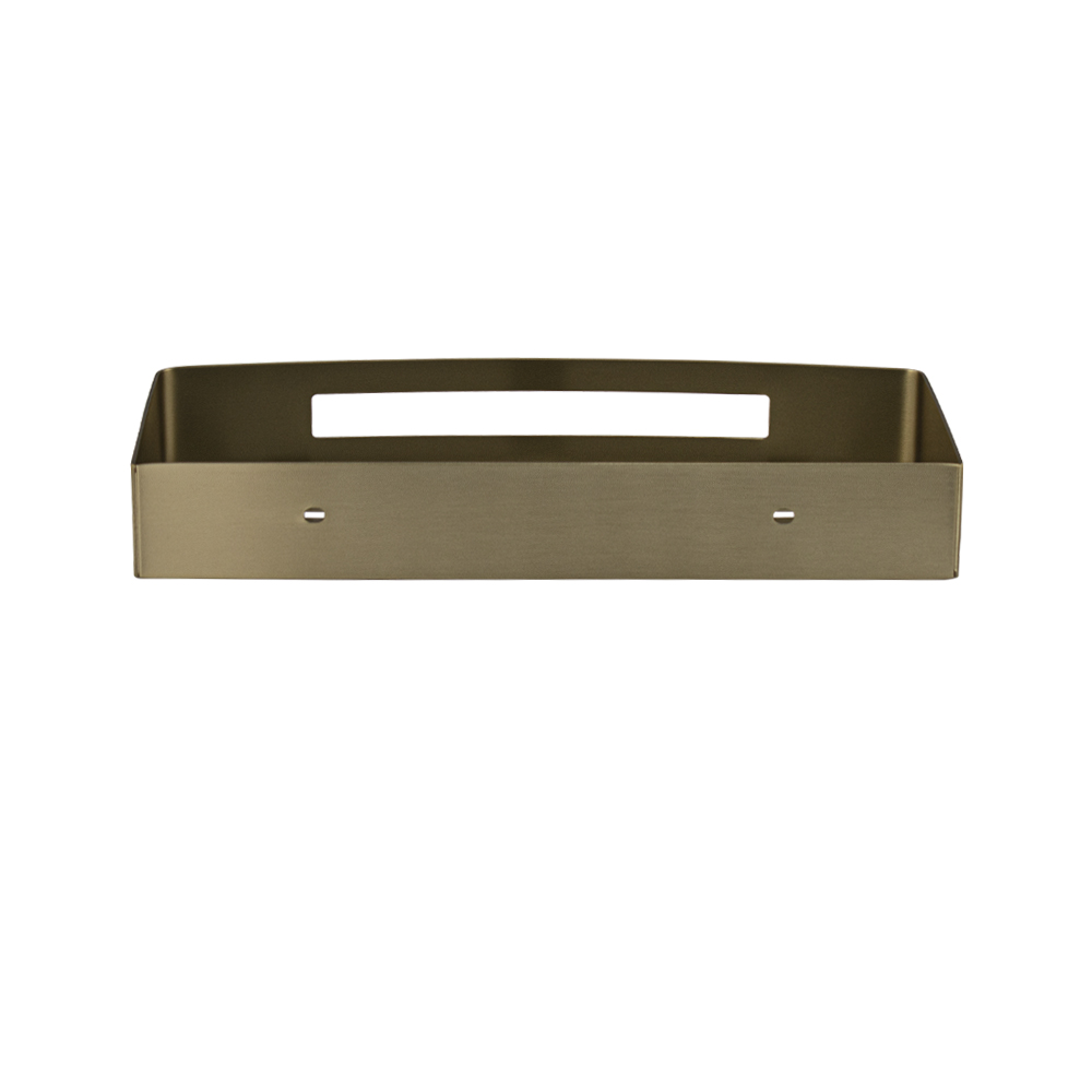 Полочка для принадлежностей, прямоугольная, с литым дном, одноэтажная, обладает высокими эксплуатационными характеристиками и подходит для использования дома, в общественных местах: отелях, ресторанах и пр. Изготовлена из прочной нержавеющей стали с золотым матовым покрытием, которое придает безупречный внешний вид и долговечность. Аксессуар не занимает много места, надежно фиксируется к стене при помощи набора креплений (входят в комплект) и служит удобным местом для хранения бытовых и косметических средств. Габаритные размеры: длина 300 мм, ширина 128 мм, высота 45 мм. Вес – 0,800 кг, объём – 0,00337 м3.