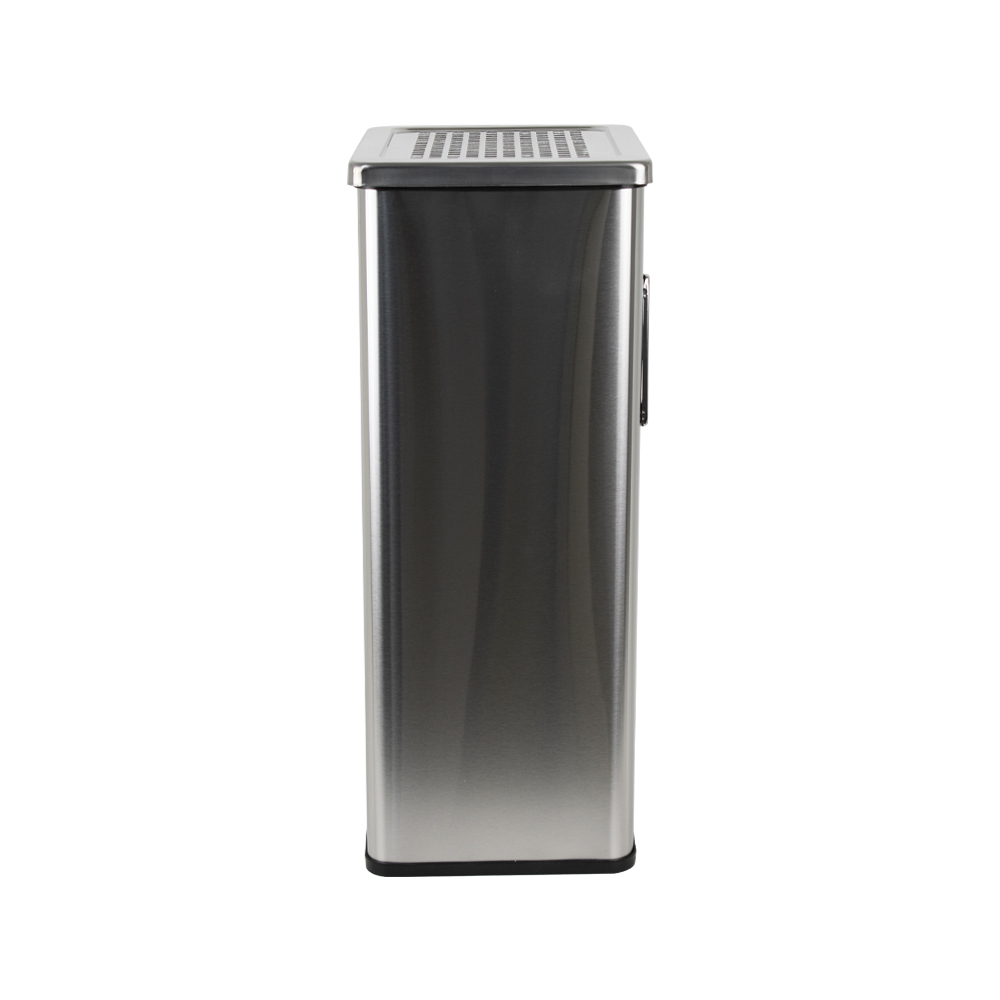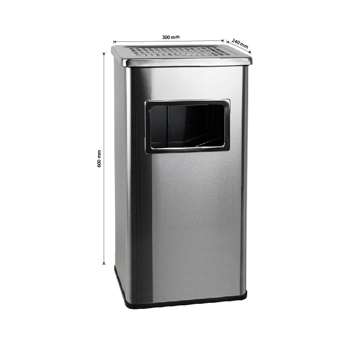 Урна с пепельницей квадратная, из нержавеющей стали SUS 410, цвет сатин. Верх состоит из съемной решетки с поддоном. Прочная и надежная для окурков и мелкого мусора идеально подходит для использования в офисах, общественных местах и других учреждениях. Изготовлена из нержавеющей стали и покрыта хромом. Благодаря большому объему в 40 л, способна вместить большое количество мусора. Легкость и компактность корзины позволяет перемещать её с одного места на другое. Габаритные размеры: высота 610 мм, ширина 300 мм, глубина 240 мм. Вес – 3,900 кг, объём – 0,05600 м3.