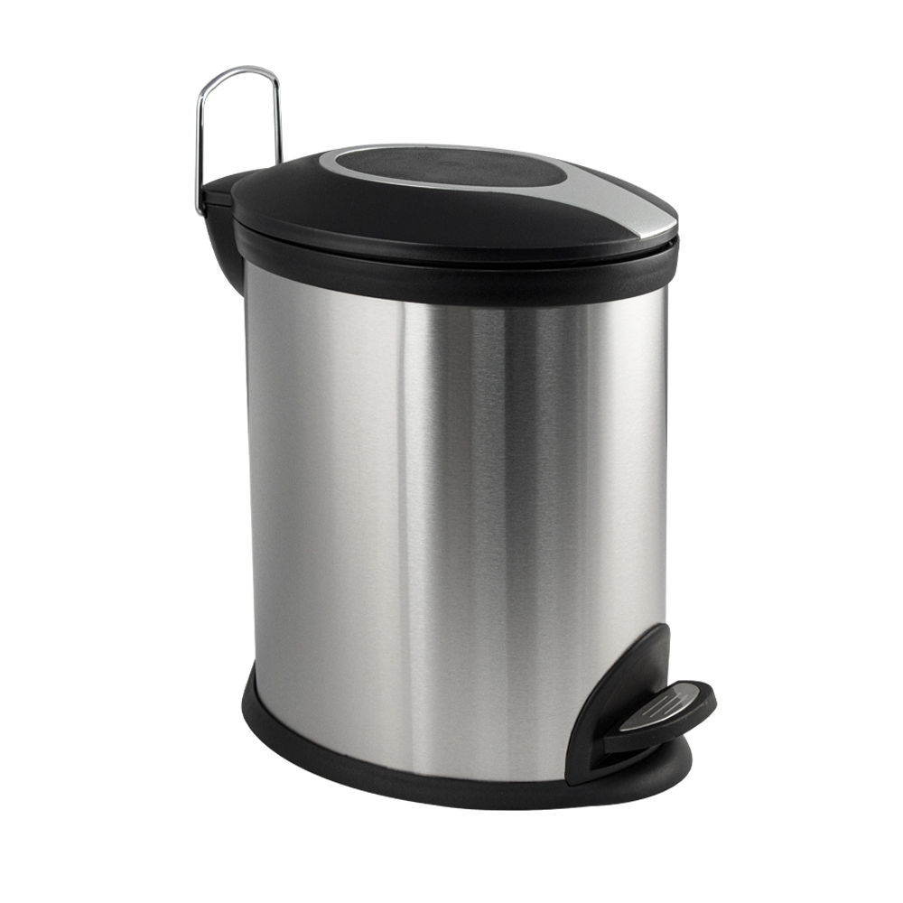 Ведро из нержавеющей стали с педалью ПРЕМИУМ 12 л. Крышка пластиковая с металлической вставкой. Овальное. Ручка. Нержавейка, хром.