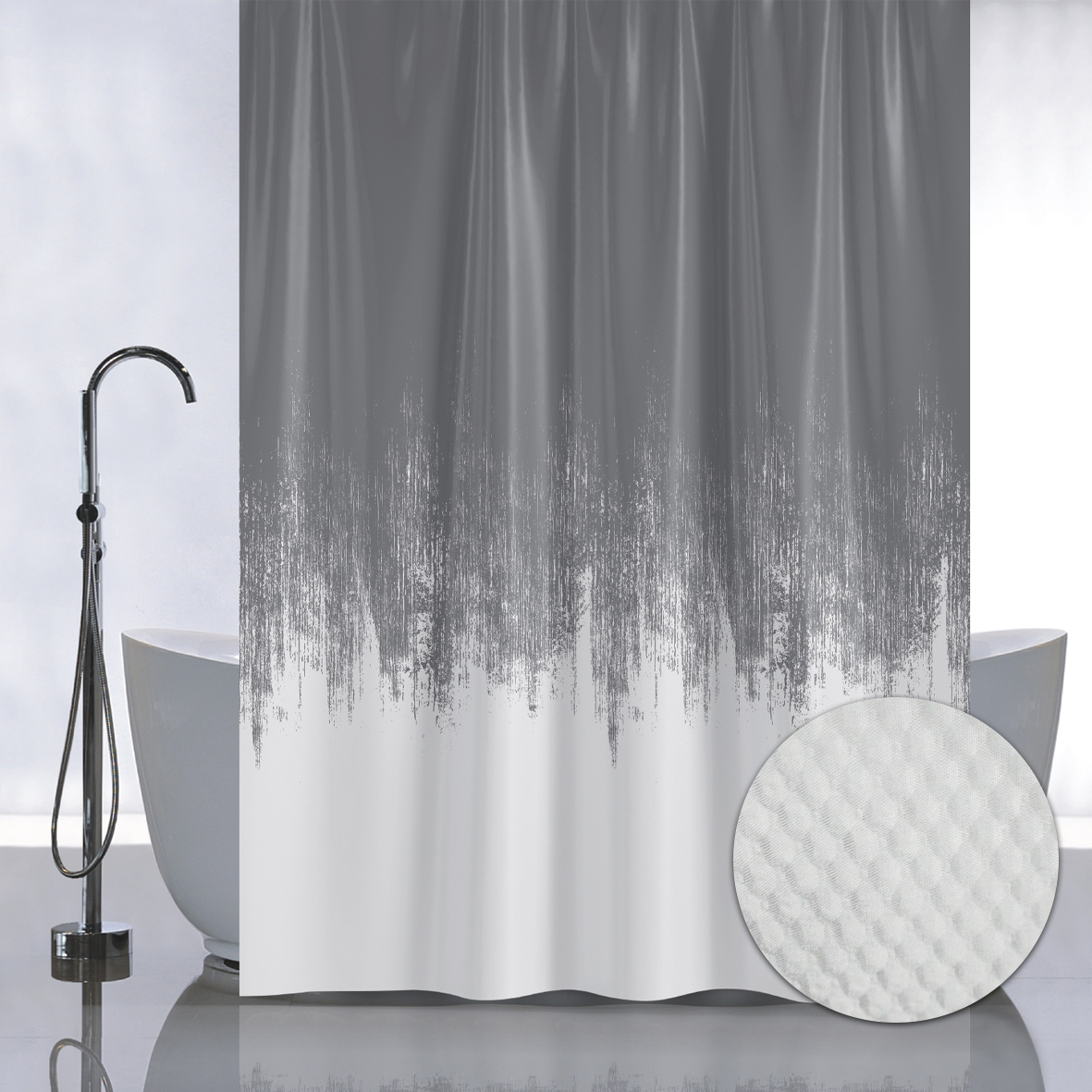Штора для ванной комнаты с теснением рельефная, защищает пол и оборудование ванной комнаты от брызг воды, изготовлена из полиэстера и микрофибры с гигроскопической пропиткой обладает выраженными водоотталкивающими свойствами. Штора имеет в верхней части 12 отверстий обработанных на оверлоке. Декоративный рисунок нанесен на поверхность ткани при помощи фотопечати. Такие принты не боятся влаги и не смываются даже очень горячей водой. Водоотталкивающие шторы для ванной изготовлены из ткани плотностью 80 г/м2, их не придется дополнительно утяжелять – они расправятся под своим весом и не будут липнуть к телу принимающего душ человека. При заказе данных изделий следует учесть, что яркость и оттенок рисунка на ткани могут несколько отличаться от изображения на экране монитора, а также допустимо отклонение в размерах полотна в пределах 5 см. Габаритные размеры: ширина 180 см, высота 180 см. Вес – 0.43 кг, объём – 0.00166 м3.