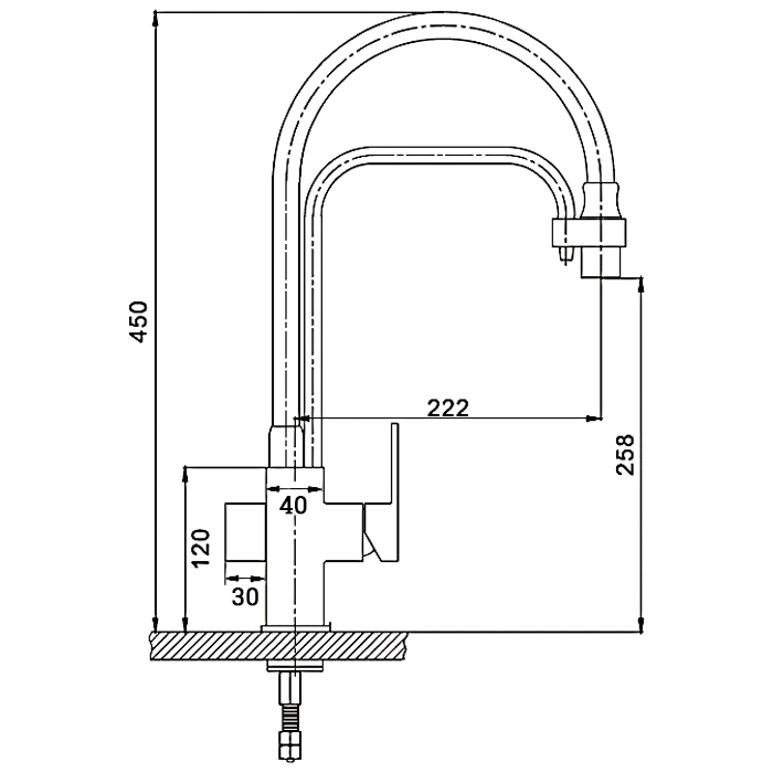 | Высота излива, см. | 25,8 |
