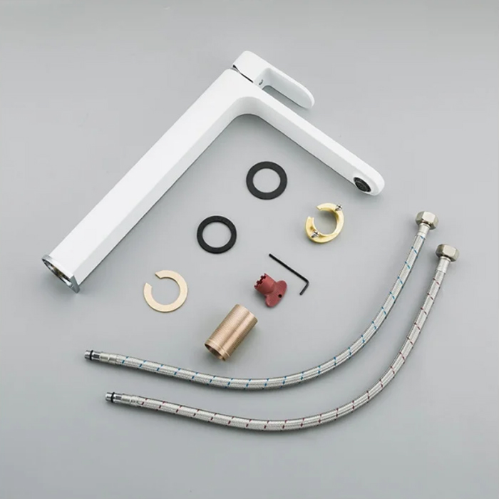 Смеситель для раковины высокий Gappo G1083-82, цвет белый + хром, смеситель изготовлен из латуни, керамический картридж 35 мм.