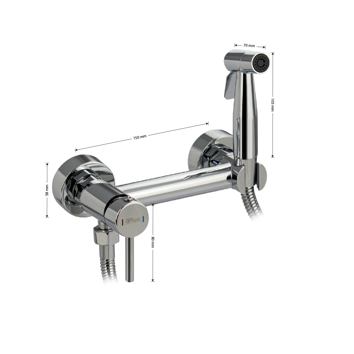 Смеситель с гигиеническим душем, из нержавеющей стали. Создаст комфортные условия для поддержания гигиены. Керамический картридж смешивает воду строго до желаемой температуры и подает ее с регулируемым напором. Управление осуществляется плавным и легким поворотом рычага. Эргономичная лейка включается за счет нажимного механизма. Она изготовлена из экологически безопасного материала, не подверженного коррозии и механическим деформациям. Хромированное покрытие придает ей эстетичный вид. Габаритные размеры: ширина корпуса 150 мм, высота лейки 105 мм, глубина лейки 70 мм, длина шланга 150 см, диаметр чашки 60 мм. Вес – 1,24 кг, объём – 0,0042 м3. В комплект входит корпус, лейка, смеситель, душевой шланг, крепёж