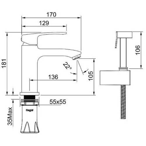 Смеситель для раковины Raglo R01.12, с гигиенический душем, цвет хром