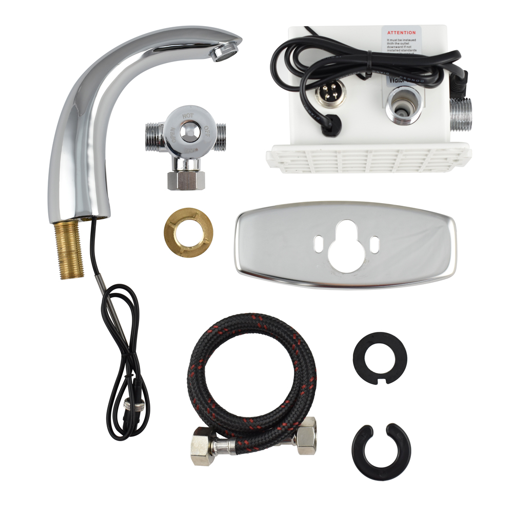 Сенсорный смеситель предназначен для монтажа в жилых домах и общественных помещениях. Изделие выполнено в стиле хай-тек из высококачественного материала с хромовым покрытием, обеспечивающим устойчивость к механическим воздействиям. Кран смешивания горячей и холодной воды с возможностью регулировки размещается под столешницей. Кран включится, если поднести руки к изливу. Бесконтактный принцип работы гарантирует гигиеничность устройства. Устройство снабжено аэратором, позволяющей очистку без использования дополнительных средств. Он насыщает воду воздухом для создания струи, комфортной для гигиенических процедур, и сокращения расхода ценного ресурса. Сенсорный смеситель включает поток воды за счет фотоэлемента. Работает как от батареек, так и от сети. Габаритные размеры основания 160 х 64 мм, высота 180 мм, длина излива 170 мм. Вес – 2,000 кг, объём – 0,00621 м3. В комплекте паспорт, корпус, нижняя часть с программным управлением, крепёж.