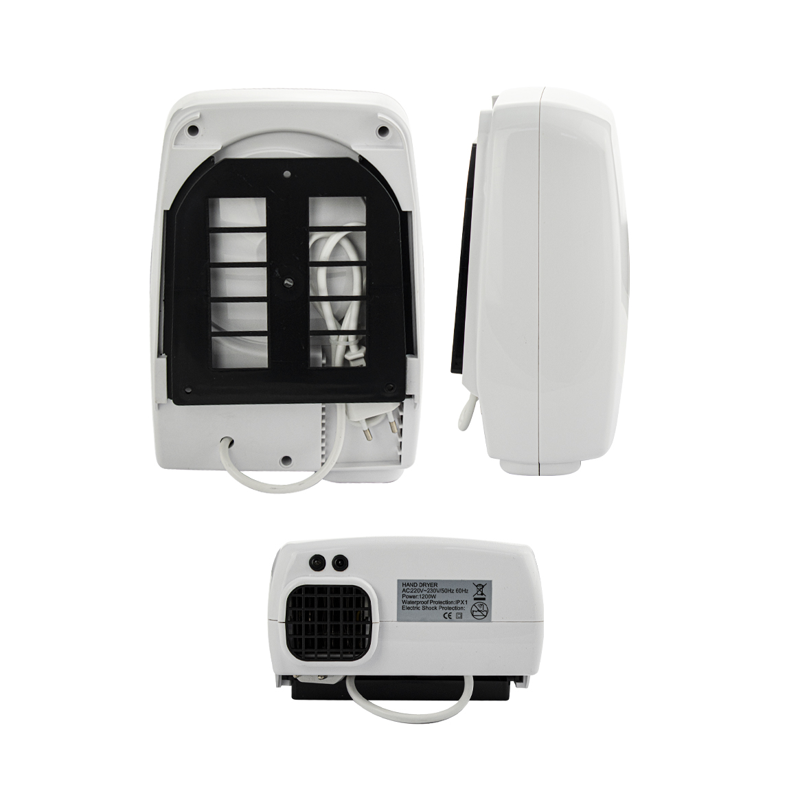 Электрическая сушилка для рук, белая, незаменима в местах с большой проходимостью людей (бизнес-центры, торговые центры, гостиницы, кинотеатры, рестораны). Корпус сушилки изготовлен из прочного пластика АБС белого цвета, который выдерживает различные механические воздействия. Прибор отличается средней мощностью, что позволит использовать оборудование в различных помещениях с ограниченным электропотреблением или старой проводкой. Для удобства эксплуатации в сушилке для рук предусмотрен инфракрасный датчик движения, который включает прибор без прикосновения к нему, при поднесении рук. Сушилка оснащена надёжным и долговечным двигателем. Прибор облачён в ударопрочный корпус. Параметры – 1200W, автоматическая, АС 220-230В 50/60Гц, сенсор включения до 140 мм, скорость потока >12м/c, температура воздуха >54°C, влагозащищенность IPX1. В комплекте сушилка, паспорт, крепёж Габаритные размеры: высота 260 мм, ширина 175 мм, глубина 110 мм. Вес – 1,48 кг.
