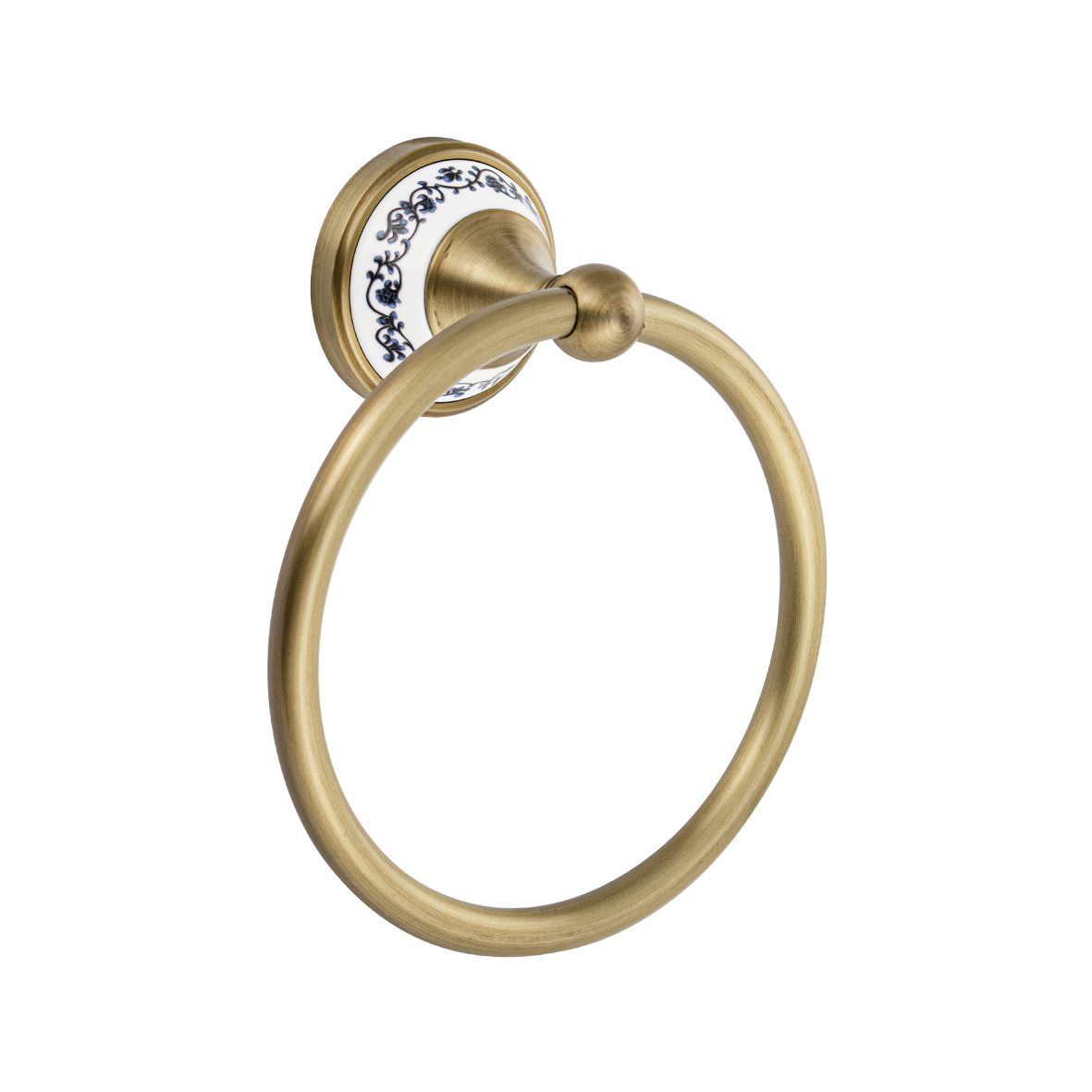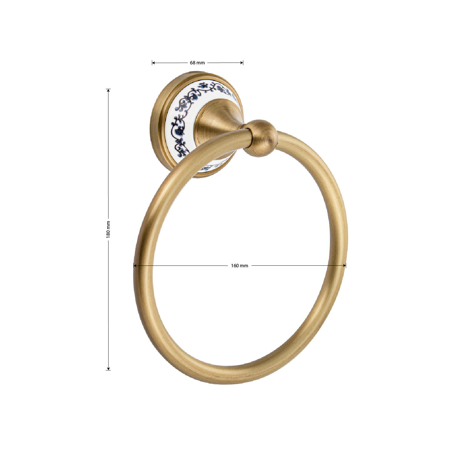 Держатель для полотенец металлический, в виде кольца,с керамической вставкой с орнаментом, стильный и функциональный элемент санузла. Материал изготовления — ЦАМ. Имеет специальное бронзовое, матовое покрытие, которое защищает изделие от влаги и придает ему безупречный стильный вид и долговечность. На держателе с легкостью можно размещать любые полотенца для сушки. Идеально подойдет не только для ванной, но и для кухни, а также для дачи или гаража – при необходимости на держатель можно вешать любые предметы. Изделие крепится к стене с помощью дюбелей и саморезов (входят в комплект). Габаритные размеры: d = 160 мм, высота 180 мм, глубина 75 мм, основание 68 мм. Вес – 0,37 кг, объём – 0,003 м3.