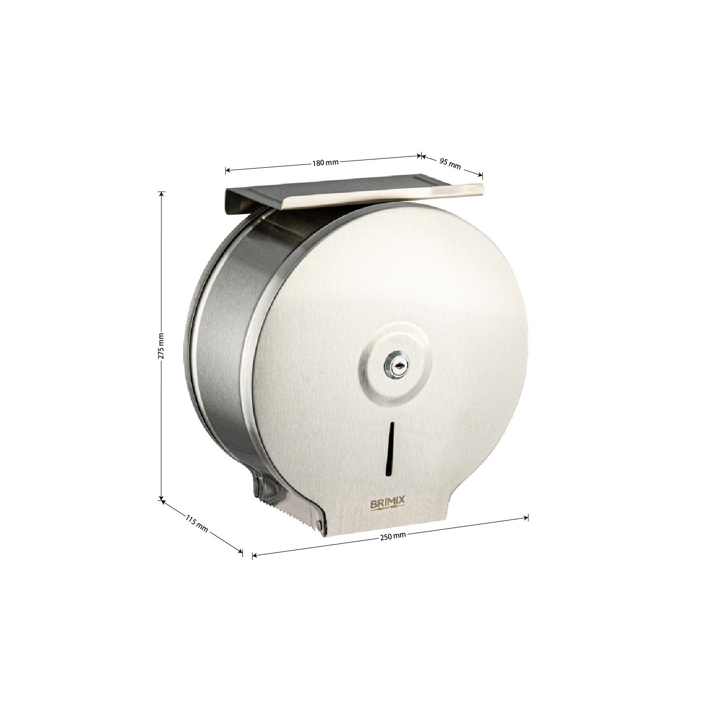 Диспенсер для туалетной бумаги – барабан, премиум, с полочкой и ключем. Антивандальный корпус диспенсера изготовлен из нержавеющей стали. Предназначен для подачи профессиональной туалетной бумаги в рулонах с намоткой до 200 м. Обеспечивает высокий уровень гигиены и комфортную подачу туалетной бумаги. Имеется окошко для контроля остатка расходных материалов и зубцы для удобного отрывания бумаги. Сочетается с расходными материалами других производителей. Оборудован самозахлопывающимся замком с ключом. В комплект входят крепежные материалы для установки. Преимущества диспенсера для туалетной бумаги – гигиеничность. Расходные материалы находятся внутри корпуса, их не касаются руки пользователей, на них не попадает грязь и капли воды. Стильный и элегантный корпус диспенсера прекрасно впишется в интерьер любого помещения. Легкость и простота в эксплуатации. Габаритные размеры: высота 275 мм, ширина барабана 250 мм, глубина барабана 115 мм, ширина полки 180 мм, глубина полки 95 мм. Вес – 1,716 кг, объем – 0,01000 м