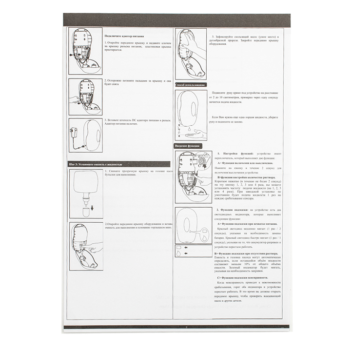 Настенный, автоматический сенсорный дозатор, с датчиком объёма жидкости и уровня заряда батарей, предназначен для бесконтактной обработки рук мылом, предназначен для установки в любых санитарно-гигиенических комнатах. Имеет ключ и пластиковый замок. Дозатор прост в эксплуатации, достаточно поднести ладонь к сенсору для получения порции средства. Автоматическая подача – предотвращает распространение микробов, вызванных прикосновением. Для удобства контроля за уровнем средства на лицевой поверхности есть смотровое окно. Корпус диспенсера изготовлен из прочного пластика АБС чёрного цвета, который выдерживает различные механические воздействия. В резервуар емкостью 1000 мл можно заливать как антисептик , так и прочие средства. Разместив диспенсер на стене, достаточно время от времени проверять заполненность резервуара. Это отличное решение как для частных владений, так и для гостиниц, кафе, столовых и прочих общественных мест. Питание от 4-х батареек АА (в комплект не входят). Габаритные размеры: высота 235 мм, ширина 140 мм, глубина 110 мм. Вес – 0,900 кг, объем – 0,00500 м3.