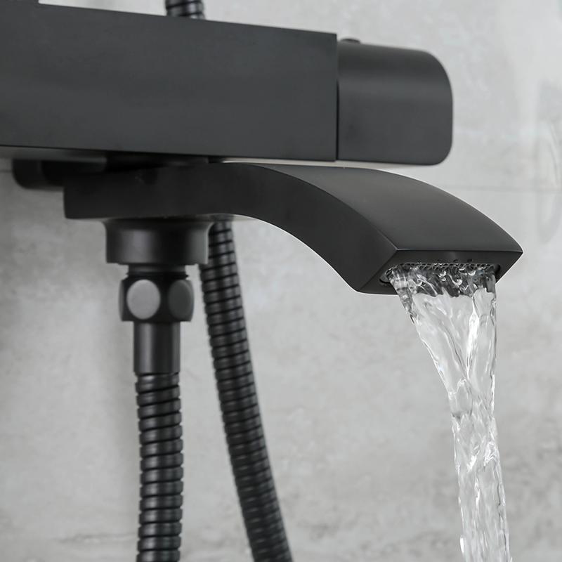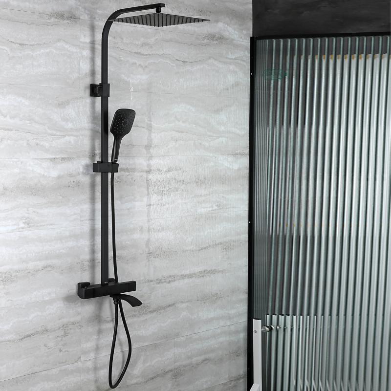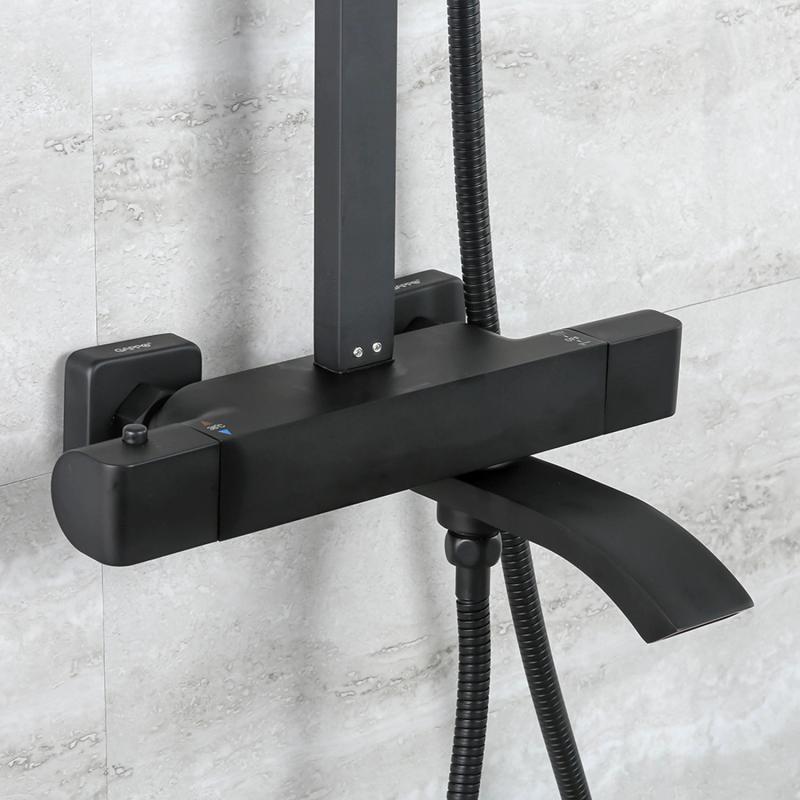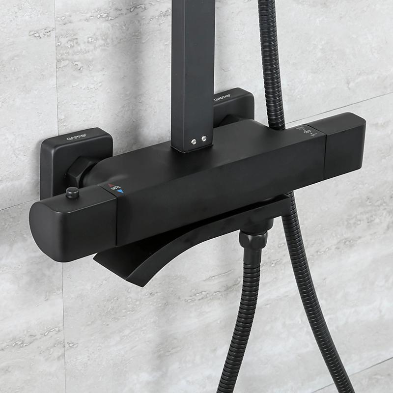 Душевая система Gappo G2407-60 черного цвета с термостатом, смеситель из латуни, верхний тропический душ 30 х 30 см из нержавеющей стали.