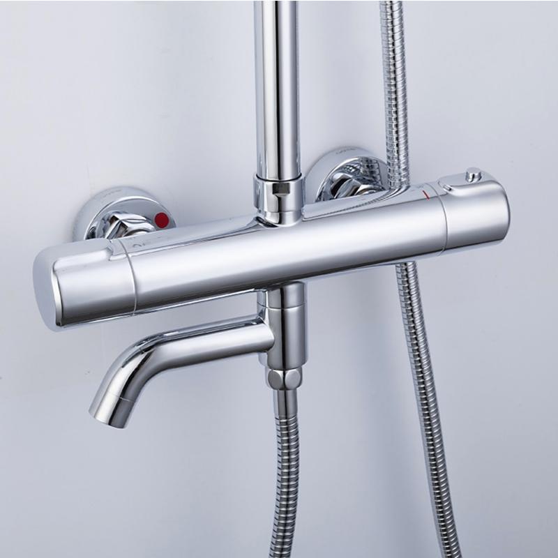 Недорогая душевая система с термостатом Gappo G2490 (226 мм) выполнена в круглом дизайне (все детали системы круглые) и имеет легкий настенный монтаж. Термостатический смеситель изготавливается из латуни и получил короткий поворотный излив, который поможет набрать воду в ванную. Держатель для лейки имеет регулировку по высоте, что обеспечит комфортное пользование душевой стойкой.