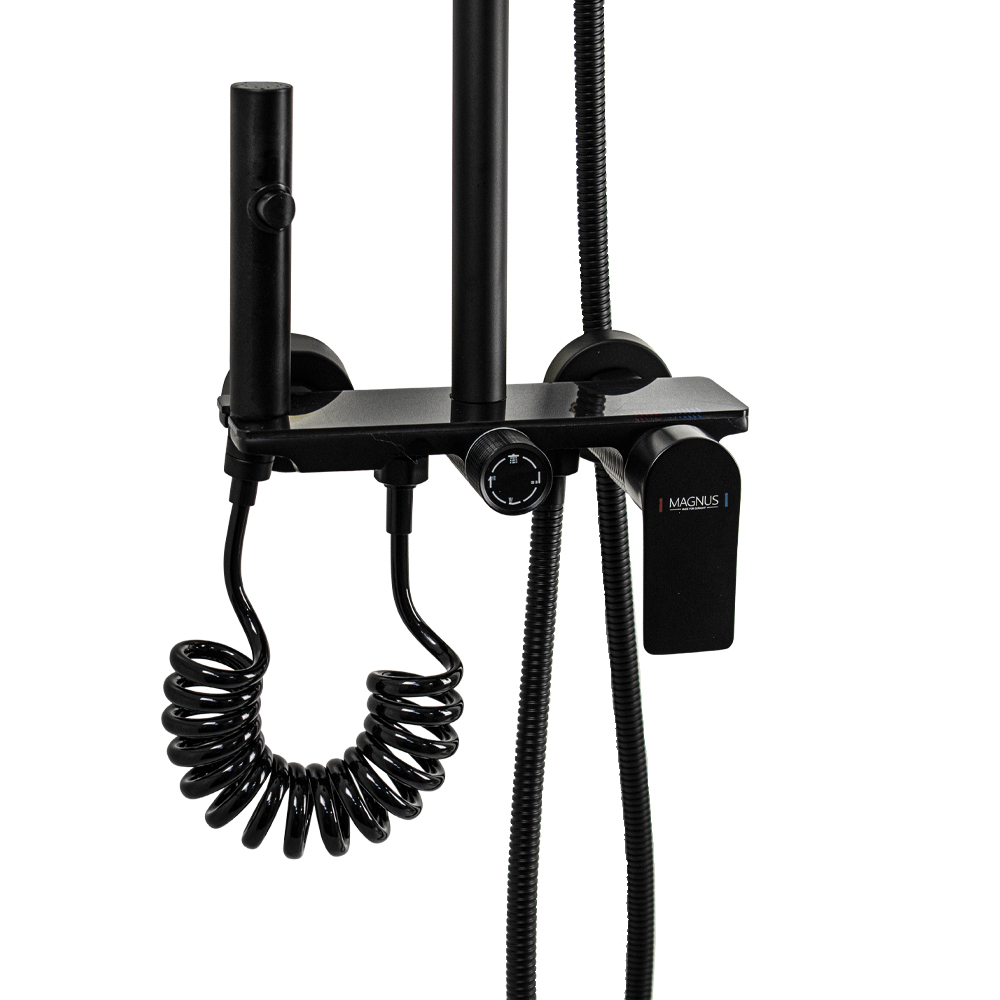 Душевая система с площадкой из закаленного стекла черная MAGNUS 8479