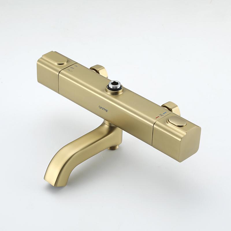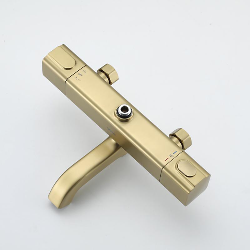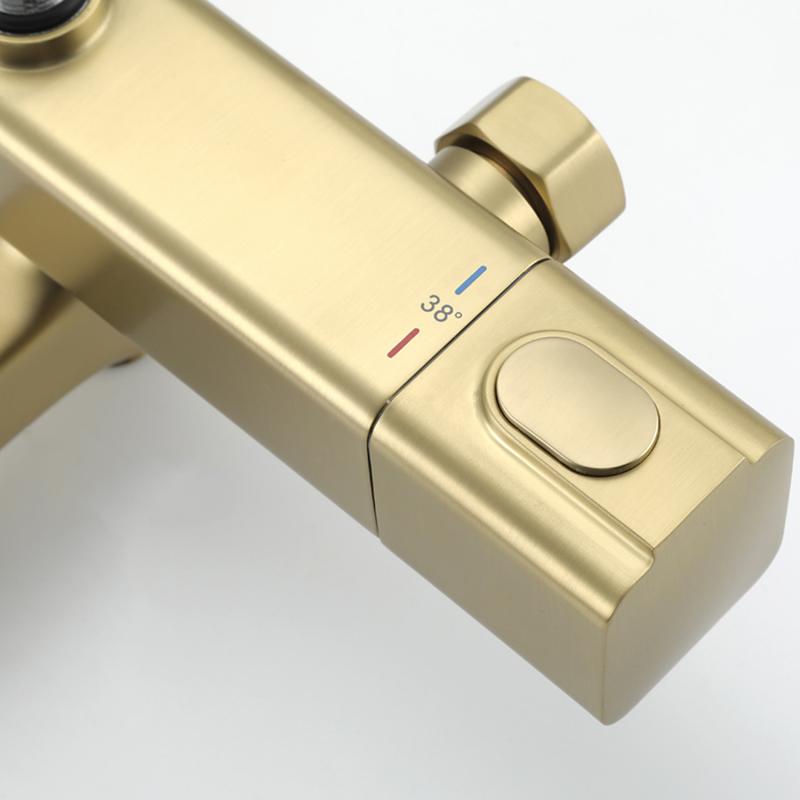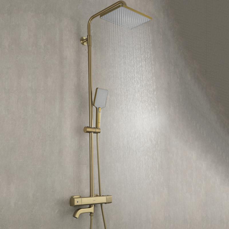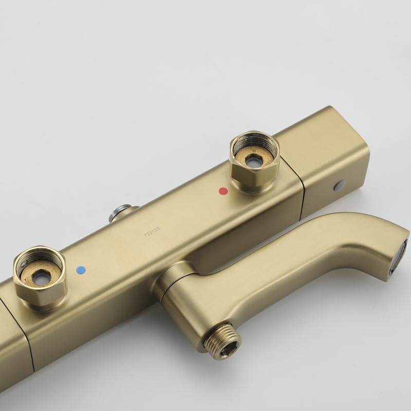 Душевая система с термостатом золотой цвет Gappo G2491-3, из латуни, тропический душ 25*25 см из ABS-пластика, 1 режимная ручная лейка, поворотный излив для ванны.