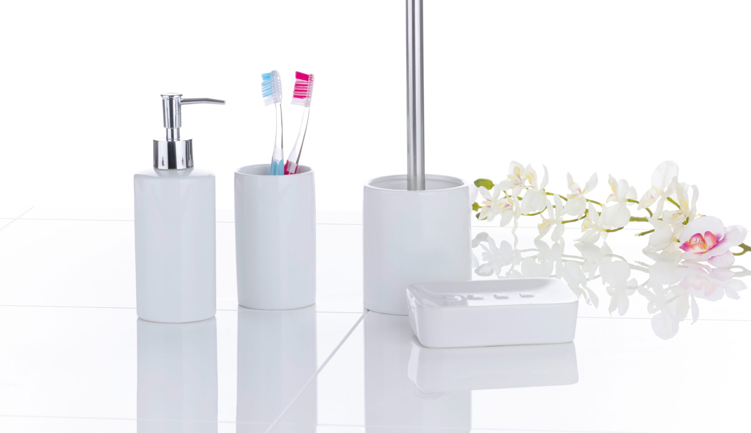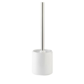 Щетка для унитаза. Произведено из керамики и стального сплава, покрытого хромом. Цвет белый. Глянцевая поверхность.