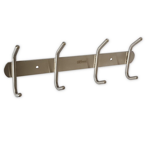 Вешалка с четырьмя крючками прямая на планке, из нержавеющей стали. 28 см