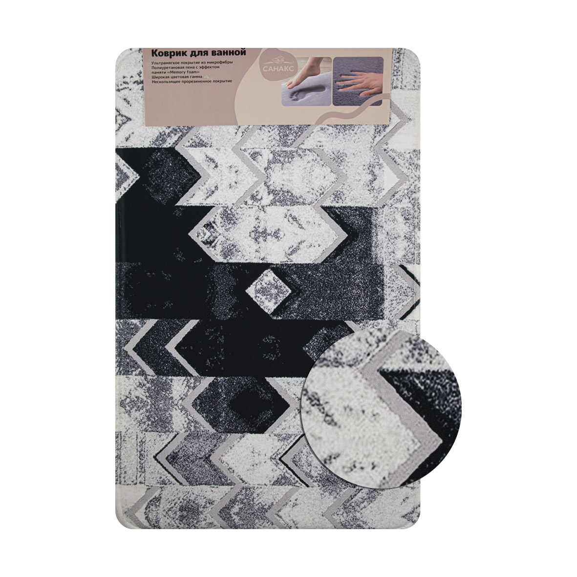 Коврик в ванную ПАМЯТЬ – эффект восстановления черно-серый 50 х 80 см САНАКС 00444