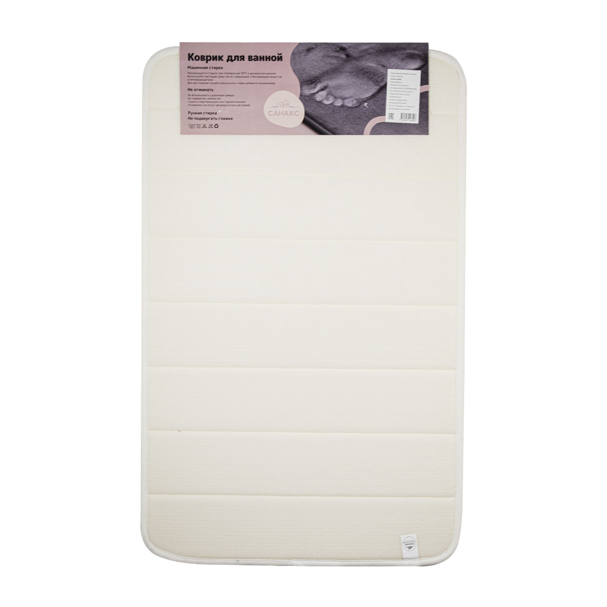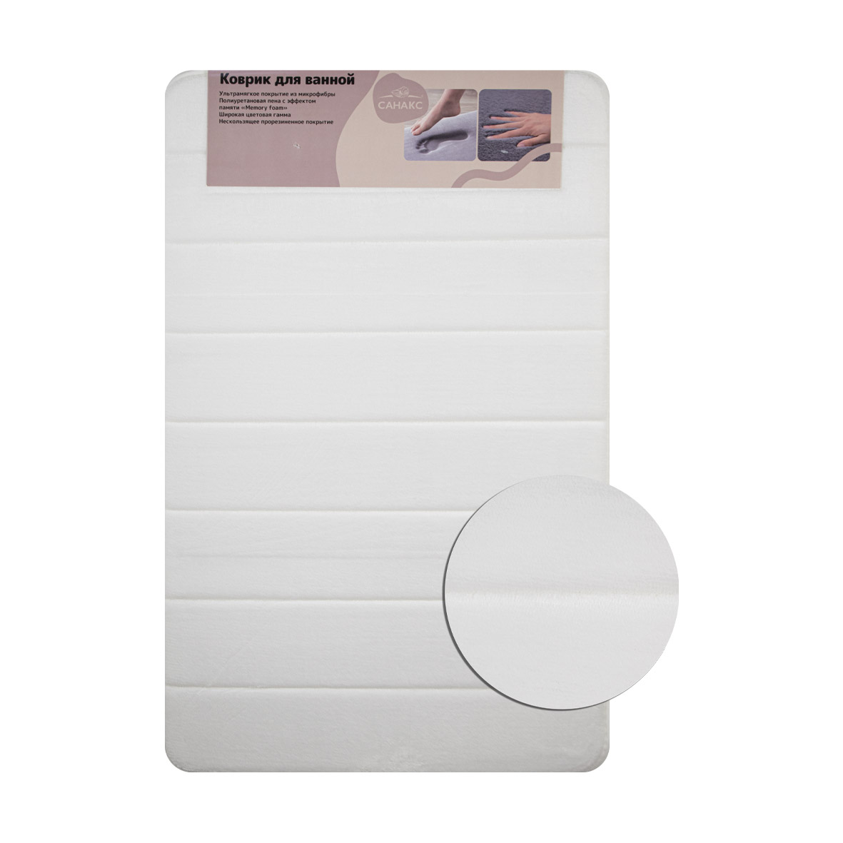 Коврик в ванную, одинарный с антискользящим покрытием однотонный, белый, высота ворса 18 мм. Мягкий, плотный и приятный на ощупь с эффектом восстановления. Стирать коврик можно в стиральной машине при 30-40 градусах без хлора. Состав коврика – полиэстер на качественной латексной основе, быстро сохнет и не накапливает влагу, износостойкий. Коврик универсального назначения: для ванны, для гостинной, на кухню и т. д. Габаритные размеры: высота 800 мм, ширина 500 мм.