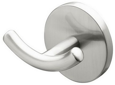 Крючок двойной. Крепится к стене шурупами или специальным двухкомпонентным клеем для металла и керамики. Произведено из цинкоалюминиевого сплава с покрытием из матового никеля.