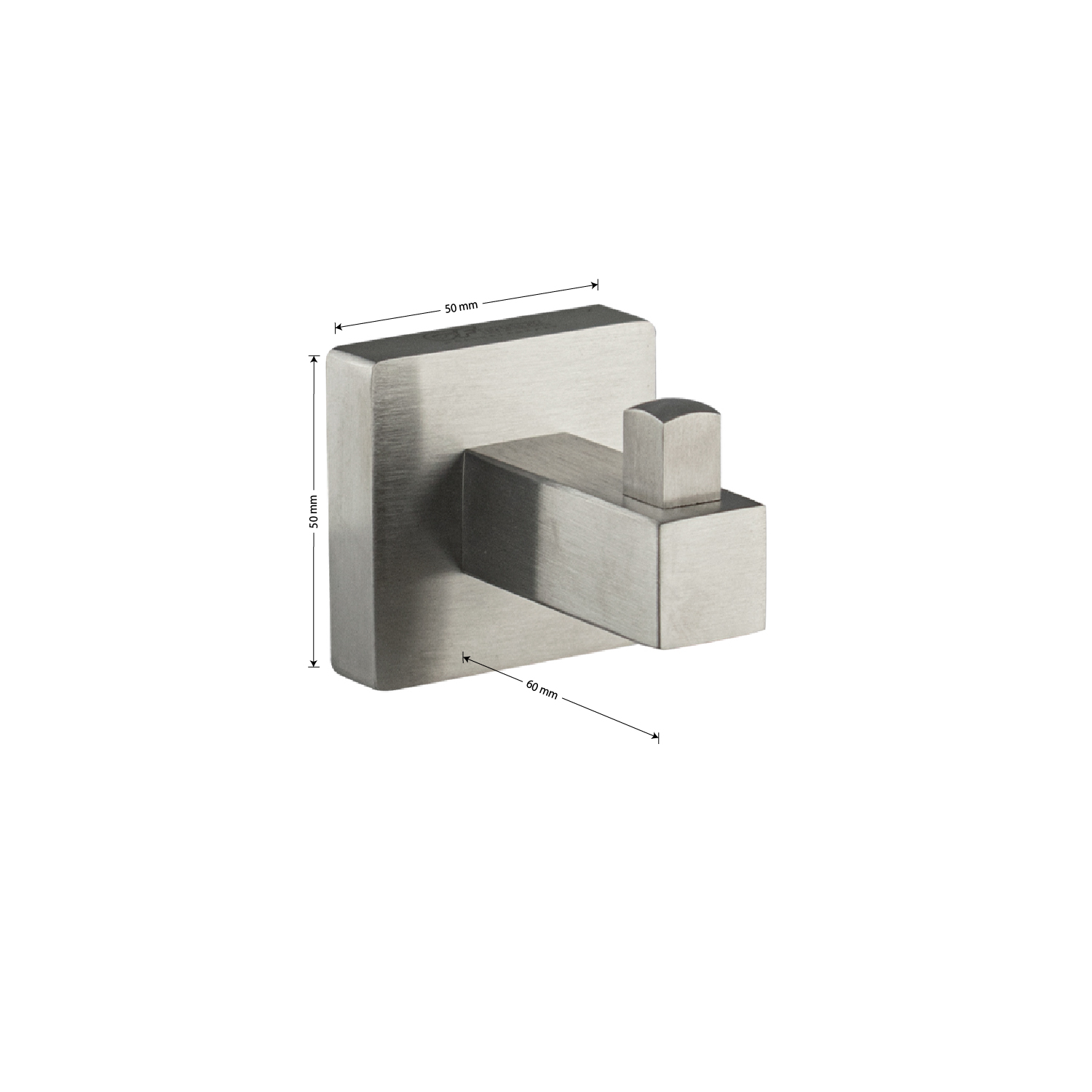 Крючок одинарный, для полотенец, металлический. Изготовлен из прочной нержавеющей стали марки SUS 304 с матовым покрытием, которое придает безупречный стильный вид и долговечность. На крючке с легкостью можно размещать вещи для сушки или вешать, как полотенца, так и одежду перед походом в душ. Идеально подойдет не только для ванной, но и для кухни, а также для дачи или гаража – при необходимости на держатель можно вешать любые предметы. Изделие крепится к стене с помощью дюбелей и саморезов (входят в комплект). Габаритные размеры: ширина 50 мм, глубина 60 мм, основание 50*50 мм.