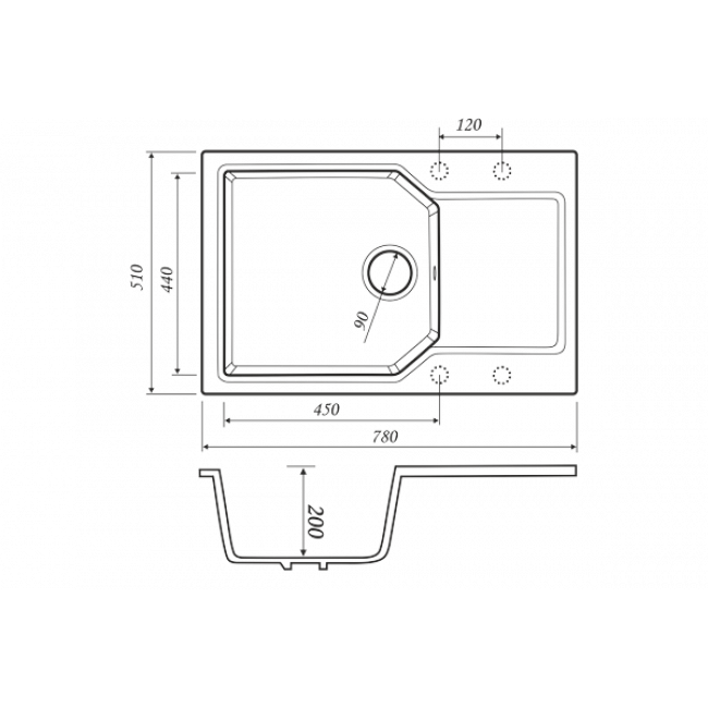 размер мойки: 510х780 мм