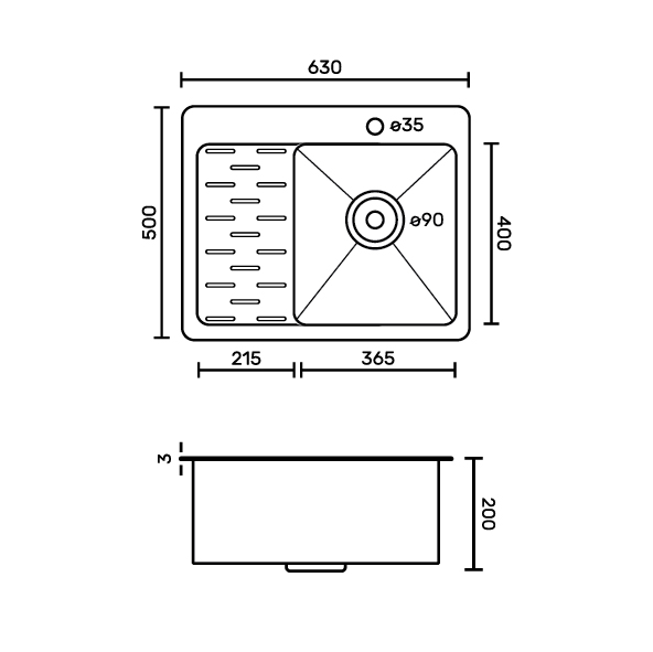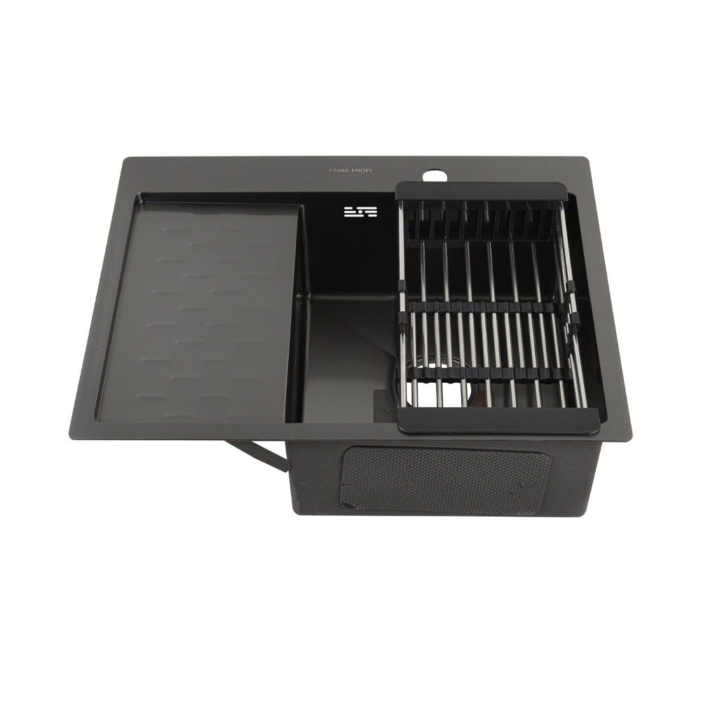 Мойка врезная, правая, графит, большой сифон с переливом. Сифон с углубленной горловиной, мусоросборником и крышкой. Врезная кухонная мойка произведена из премиальной нержавеющей стали AISI 304, обладает повышенной прочностью. Особенность мойки заключается в конструкции ее дна, имеющего небольшой уклон. Благодаря такой особенности, вода быстрее уходит в слив, не застаивается, что способствует поддержанию гигиеничности в чаше. Скругленные внутренние углы облегчают уход за мойкой, препятствуют скоплению частичек грязи. Тихой в использовании мойку делает шумоизолирующее покрытие и накладки с обратной стороны мойки. В комплект входи сифон, мойка, крепёж. Габаритные размеры: ширина 630 мм, длина 500 мм, глубина 200 мм, чаша 365*400 мм, толщина основания 3,0 мм, чаша 0,8 мм. Вес – 9,000 кг, объём – 0,09000 м3.
