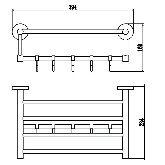 тип: полка для полотенец материал: латунь цвет: хром количество крючков: 4 размеры (шхгхв): 39,5х23,5х13,5 см вес в упаковке: 1,42 кг гарантия: 5 лет