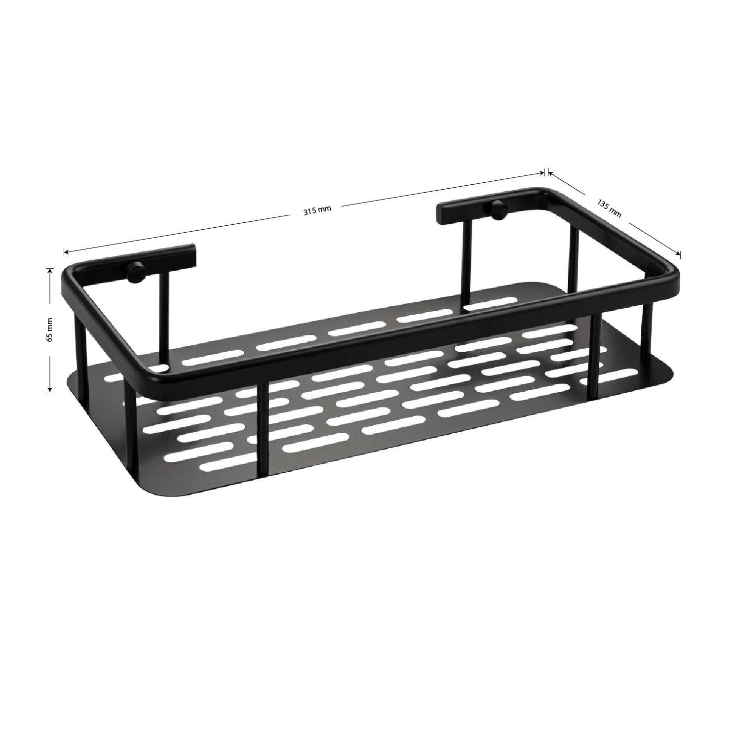 Полочка для принадлежностей прямоугольная с литым дном однаэтажная, обладает высокими эксплуатационными характеристиками и подходит для использования дома, в общественных местах: отелях, ресторанах и пр. Изготовлена из прочного алюминия с матовым покрытием чёрного цвета, которое придает безупречный вид и долговечность. Аксессуар не занимает много места, надежно фиксируется к стене при помощи набора креплений (входят в комплект) и служит удобным местом для хранения бытовых и косметических средств. Габаритные размеры: длина 315 мм, высота 65 мм, глубина 135 мм.