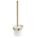 Щетка для унитаза с держателем. Крепится к стене шурупами. Произведено из цинкоалюминиевого сплава с золотистым напылением и матового стекла.