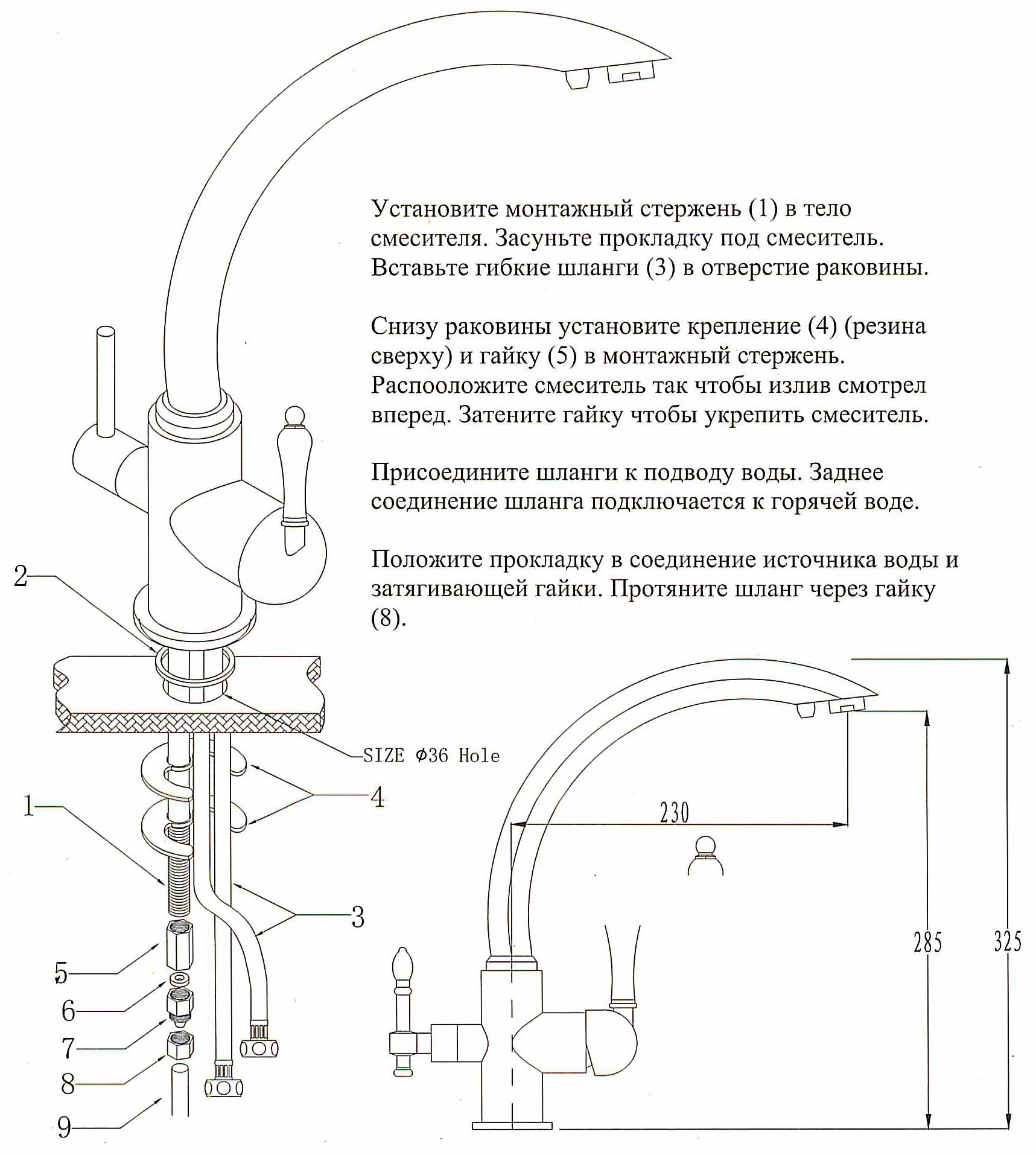смеситель, гибкая подводка, крепления |