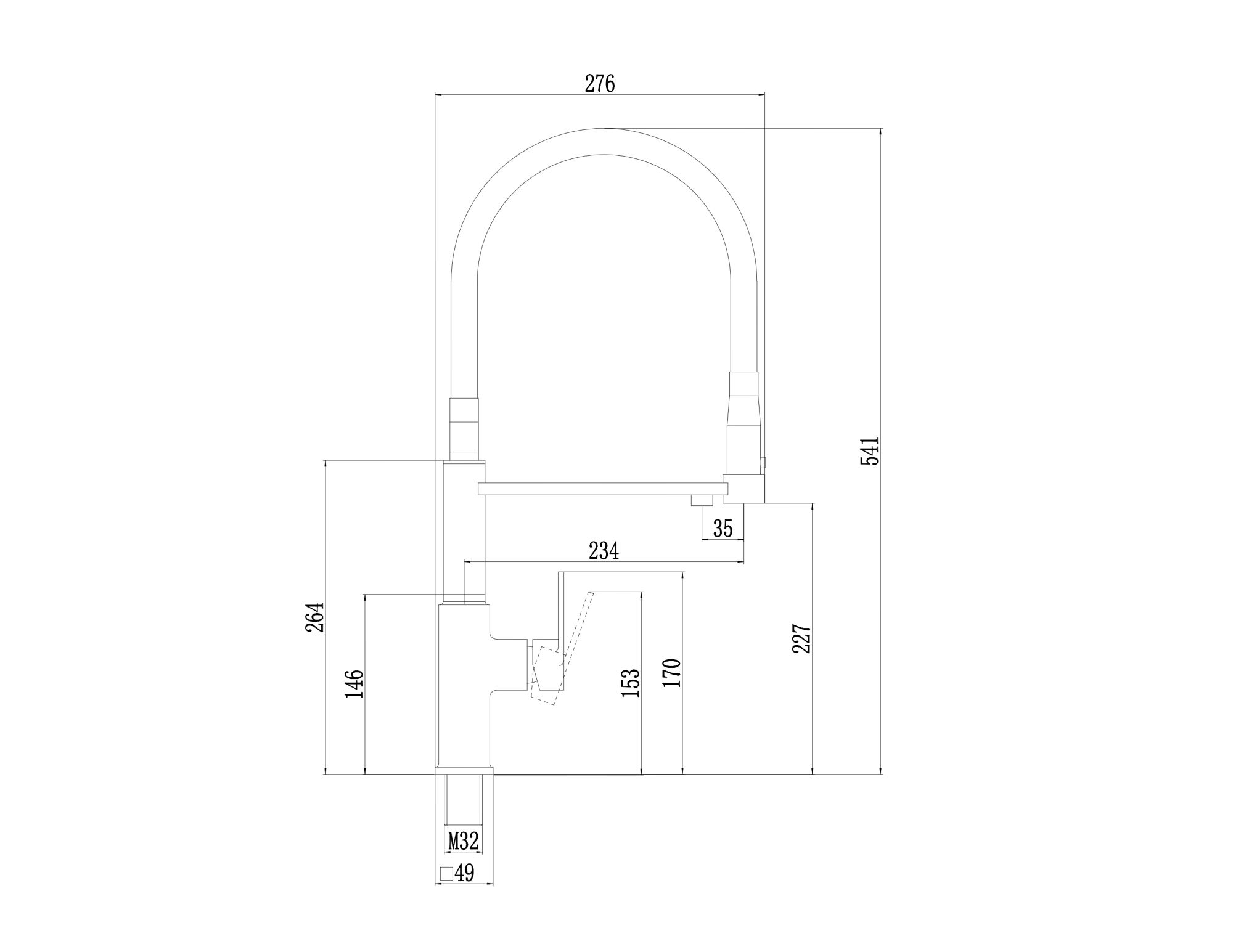 Высота излива, мм 227