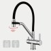 Смеситель для кухни с подключением фильтра питьевой воды Gappo G4398-80, цвет хром + черный, гибкий излив крепится к держателю при помощи мощного магнита – такое крепление упрощает пользование смесителем, а также сводит на нет стирание покрытия на лейке. Лейка-аэратор с двумя режимами работы.