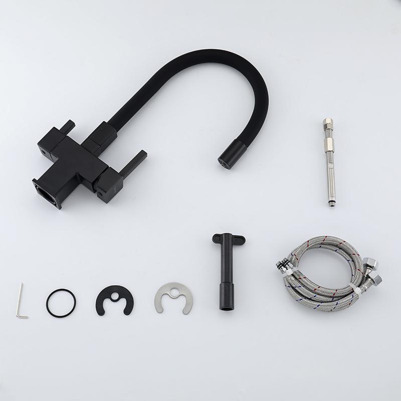 Смеситель для кухни с подключением питьевой воды Gappo G4395-36 (черный), гибкий силиконовый излив, надежный латунный корпус, керамический картридж 35 мм.