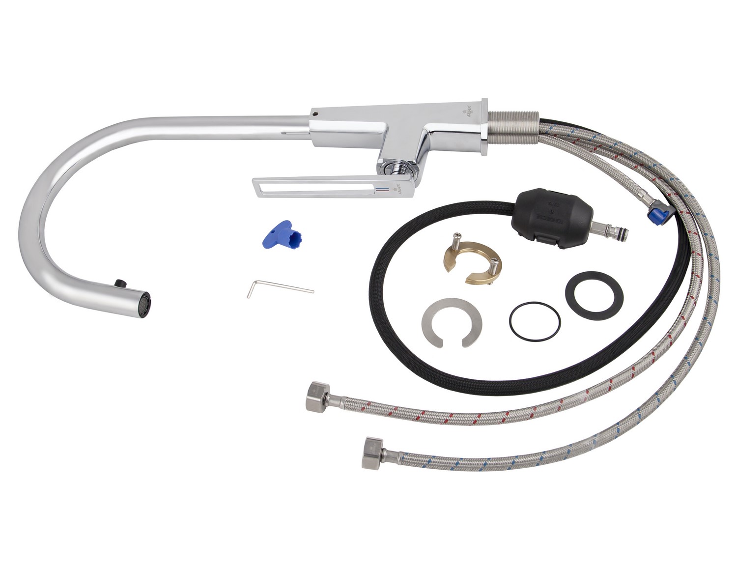 смеситель, гибкая подводка, крепления, душевой шланг, шарик для растягивания |