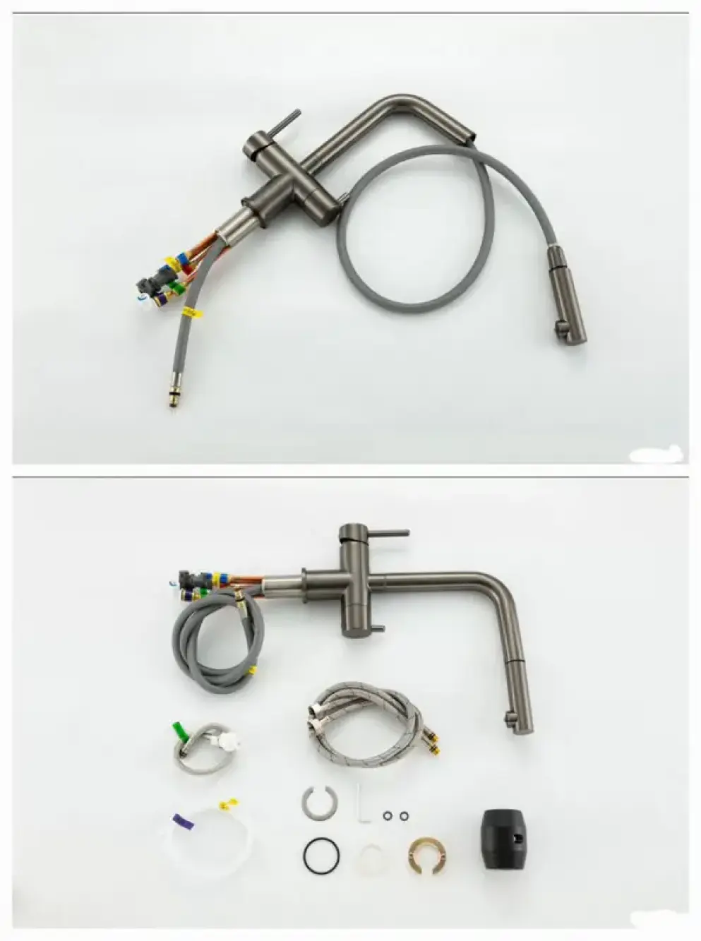 Смеситель для кухни с выдвижным изливом и подключение фильтра питьевой воды Gappo G4397-79 в цвете оружейная сталь.