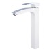 Высокий однорычажный смеситель для отдельностоящего умывальника Gappo G1007-18, монтаж на раковину или столешницу. Цвет белый с хромом, смеситель из 100% латуни с керамическим картриджем. Высокий смеситель идеально подойдет для высокой раковины-чаши.