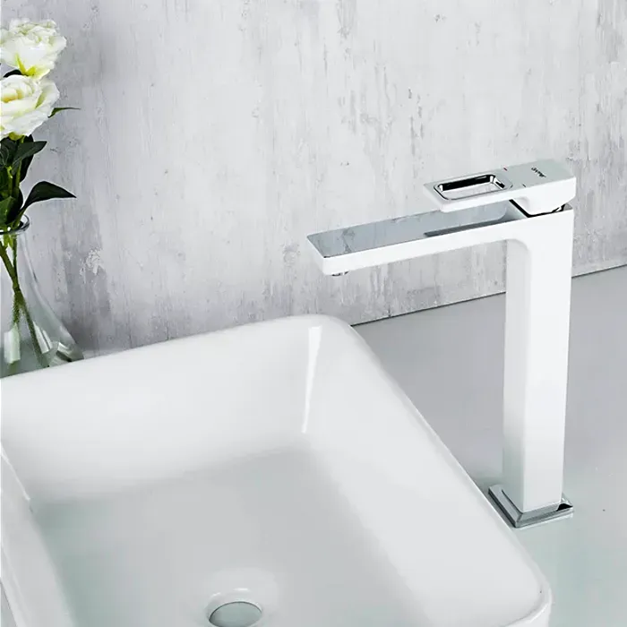 Высокий белый смеситель для раковины чаши Gappo Futura G1017-2 изготовлен из латуни. Монтаж на раковину или столешницу, цвет белый.