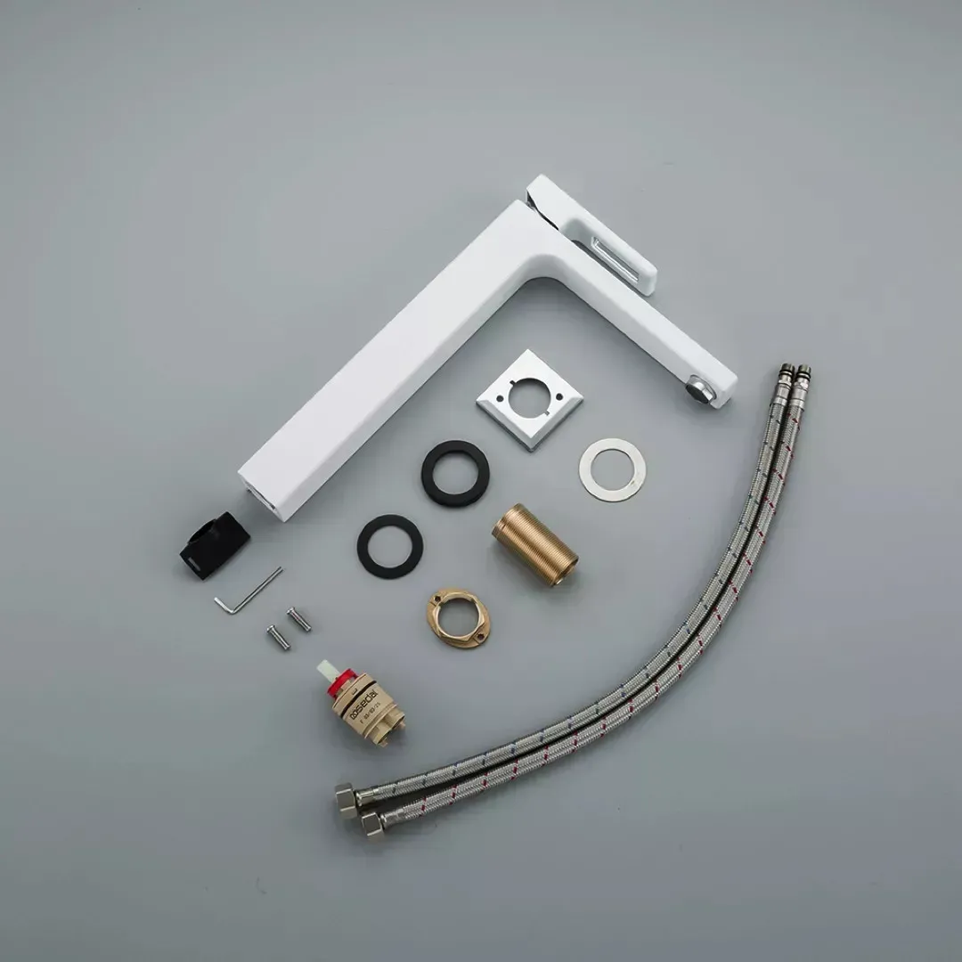 Высокий белый смеситель для раковины чаши Gappo Futura G1017-2 изготовлен из латуни. Монтаж на раковину или столешницу, цвет белый.