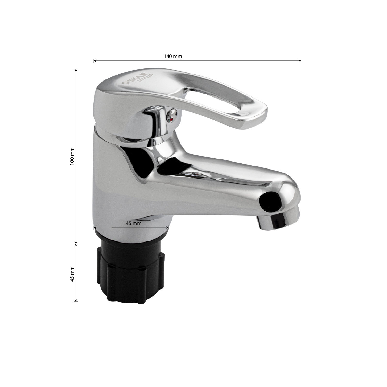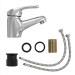 Смеситель для раковины, хромированный, с коротким изливом, литой корпус, ручка с выемкой, шаровый. Материал изготовления — ЦАМ (цинк-алюминий-медь) + нержавеющая сталь. Крепление резьба – гайка, картридж d = 40 мм. Аэратор для экономии воды. Габаритные размеры: высота 100 мм, длина 140 мм, длина излива 100 мм, диаметр посадочного седла 45 мм, длина резьбы 45 мм, длина подводки 400 мм. Вес – 1,000 кг, объём – 0,00170 м3. В комплекте паспорт, корпус, подводка 1/2, крепеж, набор прокладок.